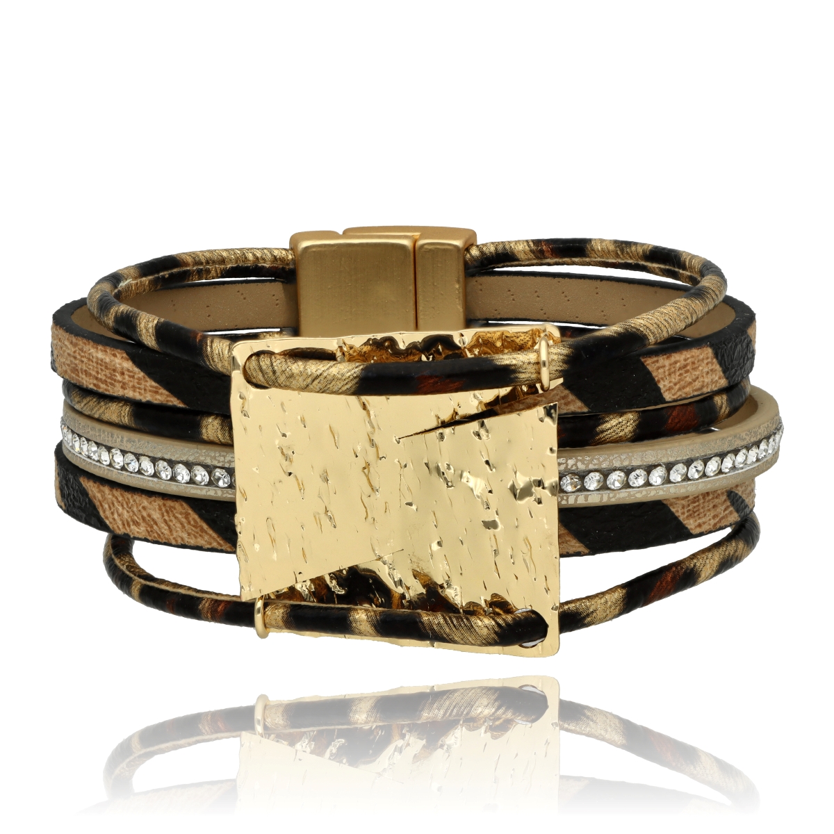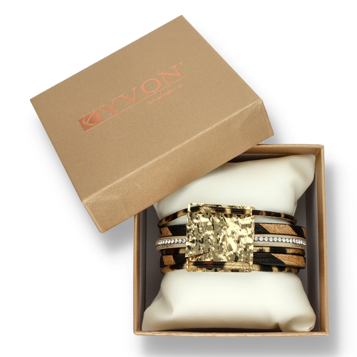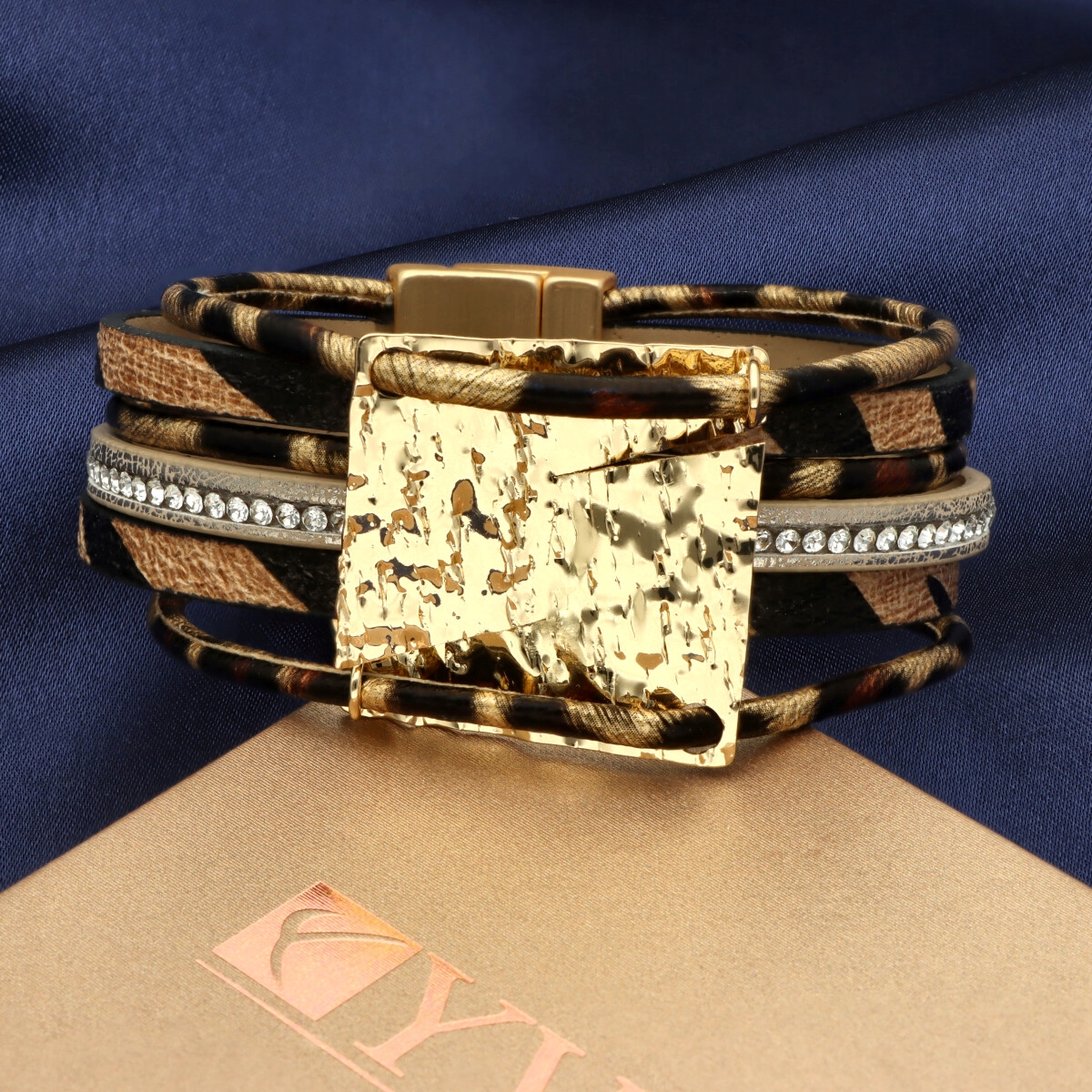 Elegancka bransoletka wykonana z wysokiej jakości skóry eko, zaprojektowana z myślą o nowoczesnych kobietach ceniących styl i wygodę. Wielowarstwowa struktura i metalowe akcenty nadają jej wyrazisty, ale ponadczasowy charakter.