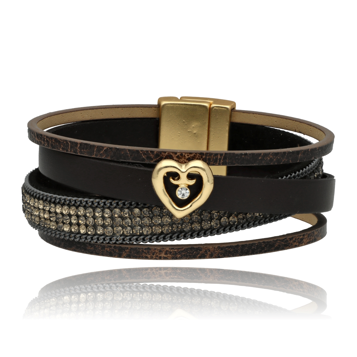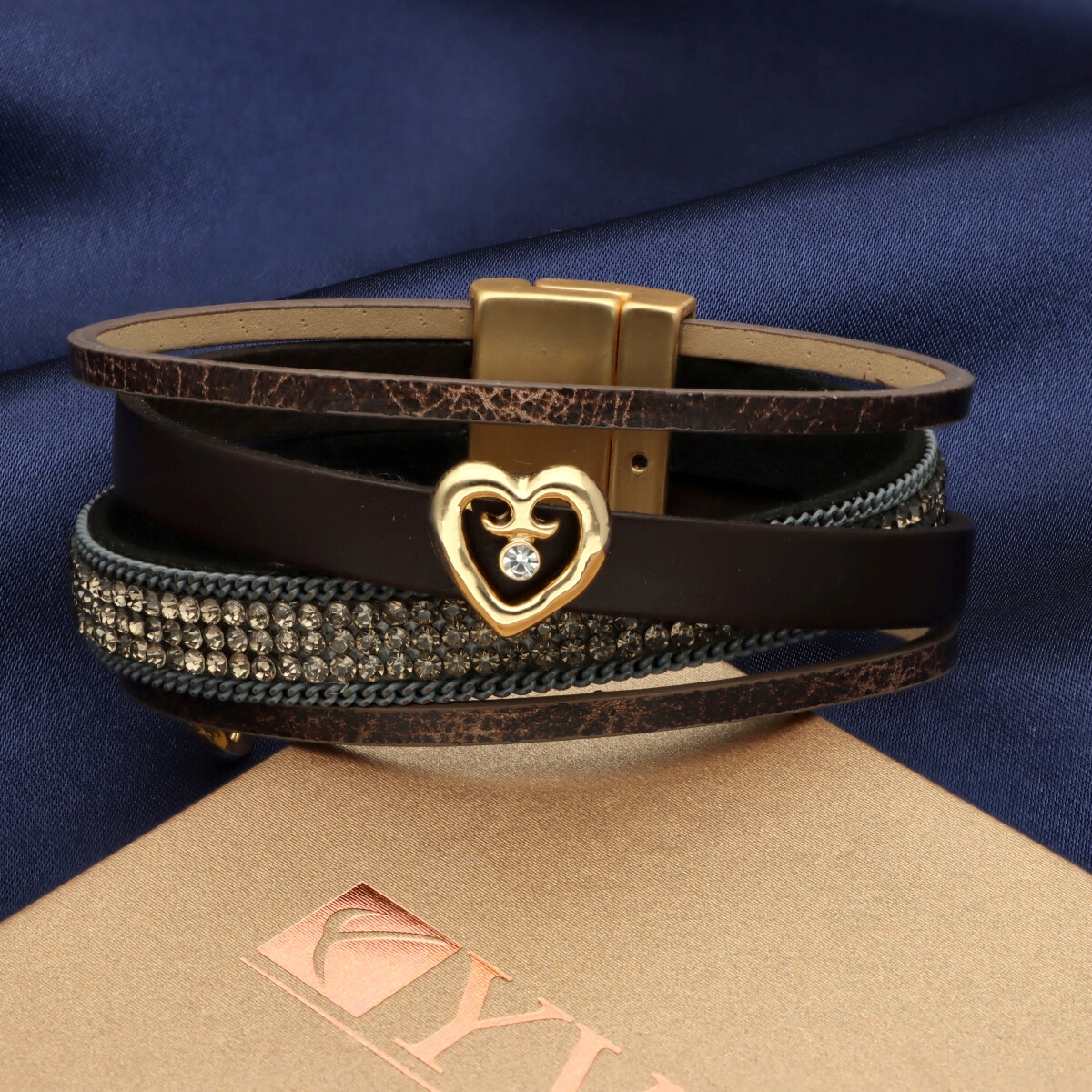 Elegancka bransoletka wykonana z wysokiej jakości skóry naturalnej i eko, zaprojektowana z myślą o nowoczesnych kobietach ceniących styl i wygodę. Wielowarstwowa struktura i metalowe akcenty nadają jej wyrazisty, ale ponadczasowy charakter.