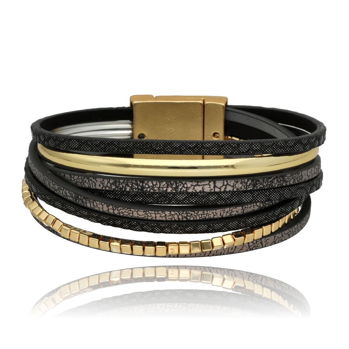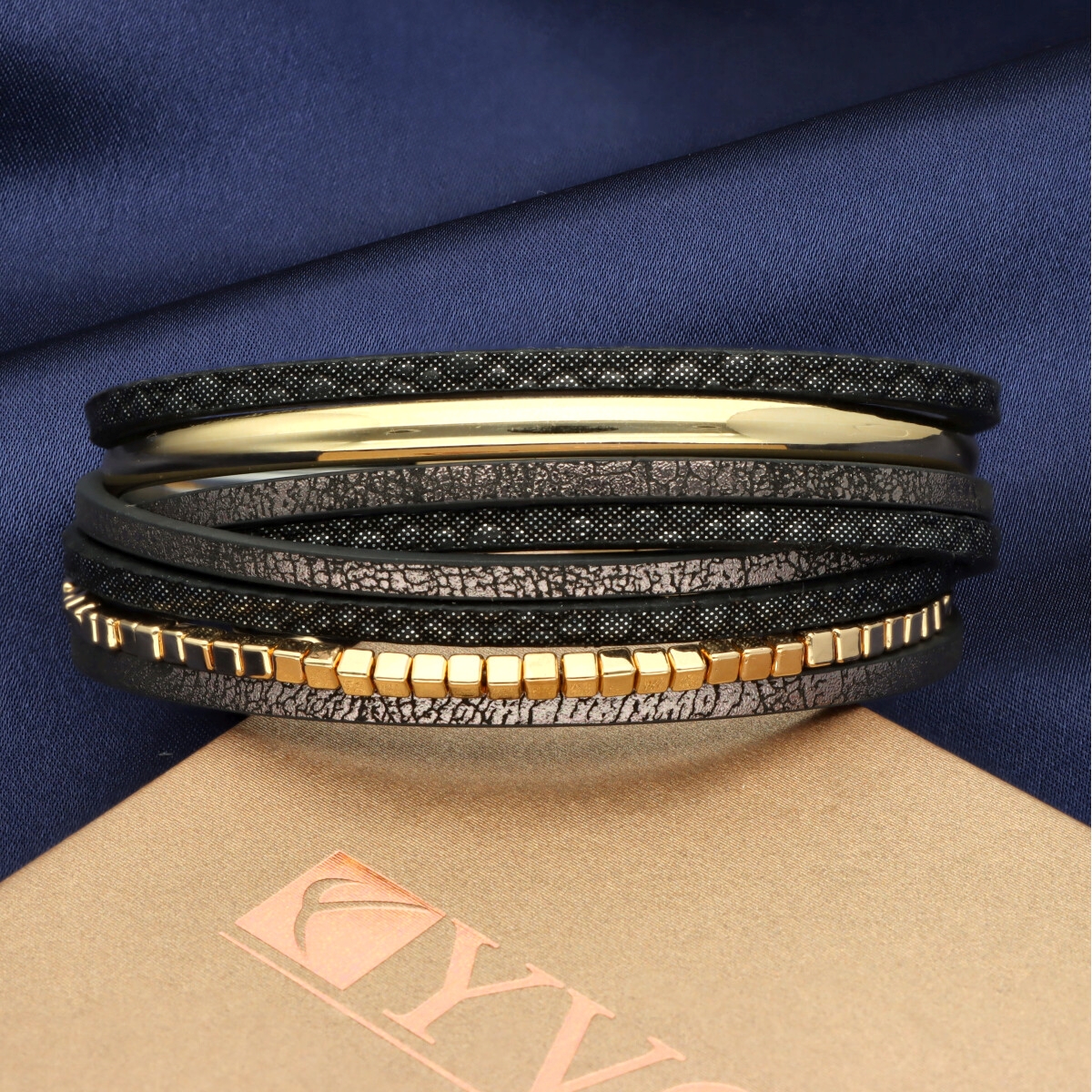 Elegancka bransoletka wykonana z wysokiej jakości skóry eko, zaprojektowana z myślą o nowoczesnych kobietach ceniących styl i wygodę. Wielowarstwowa struktura i metalowe akcenty nadają jej wyrazisty, ale ponadczasowy charakter.