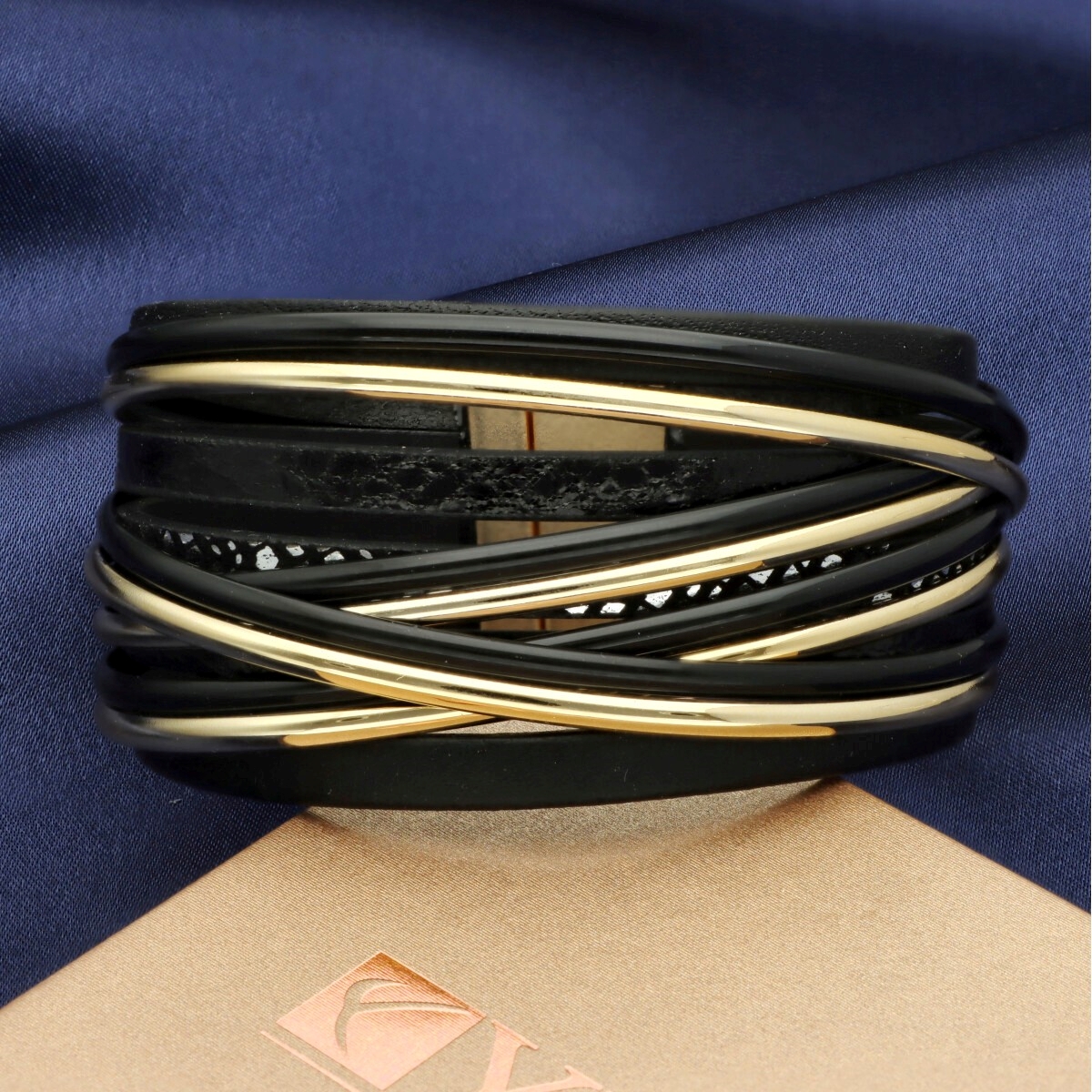 Elegancka bransoletka wykonana z wysokiej jakości skóry naturalnej i eko, zaprojektowana z myślą o nowoczesnych kobietach ceniących styl i wygodę. Wielowarstwowa struktura i metalowe akcenty nadają jej wyrazisty, ale ponadczasowy charakter.