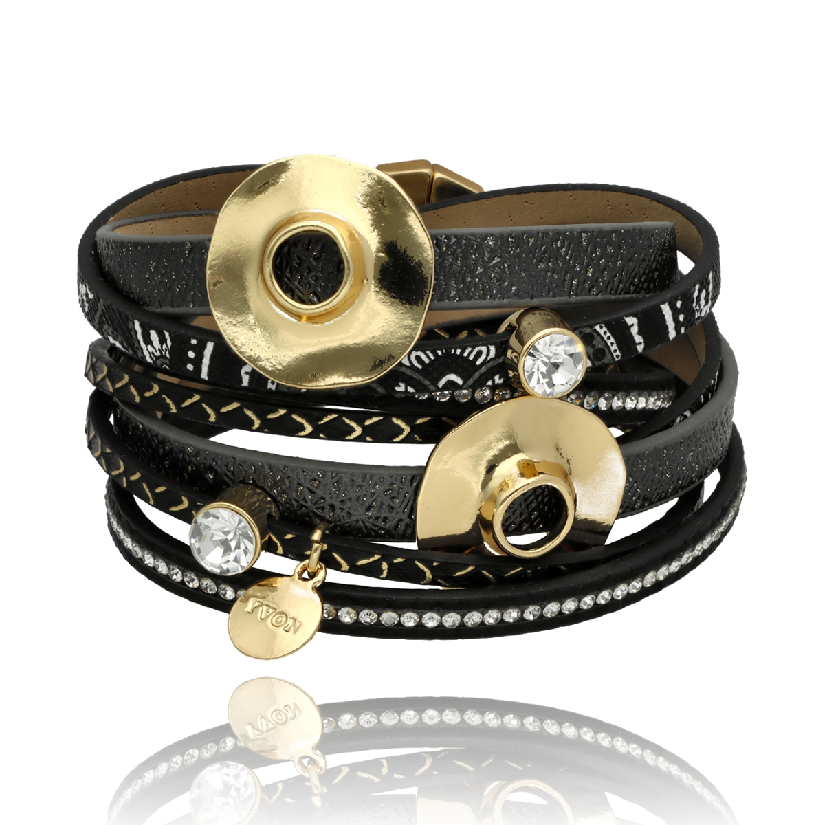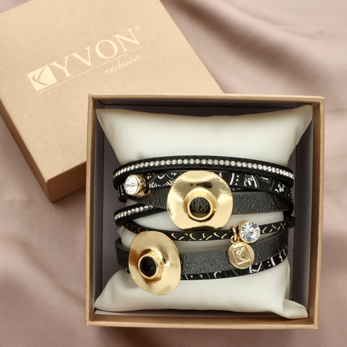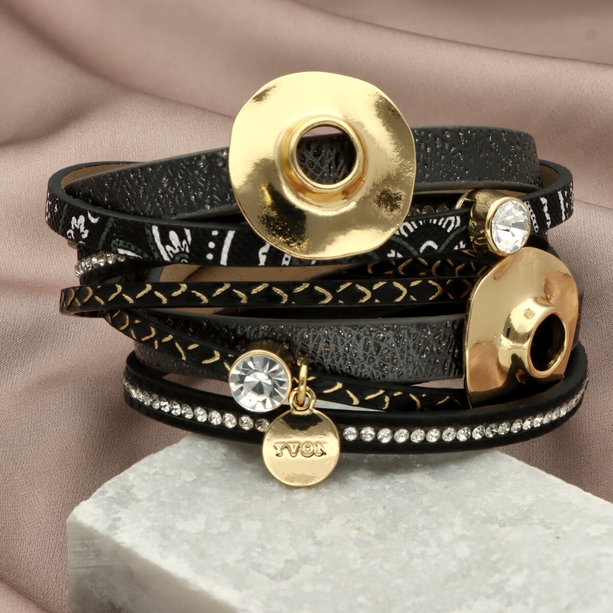 Elegancka bransoletka wykonana z wysokiej jakości skóry naturalnej i eko, zaprojektowana z myślą o nowoczesnych kobietach ceniących styl i wygodę. Wielowarstwowa struktura i metalowe akcenty nadają jej wyrazisty, ale ponadczasowy charakter.