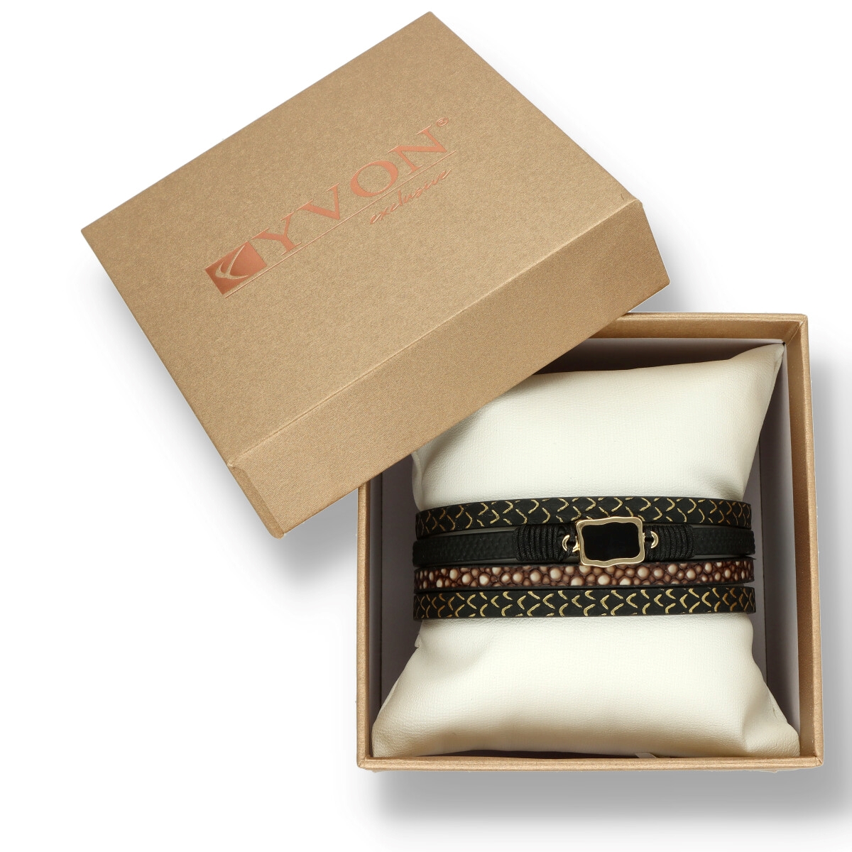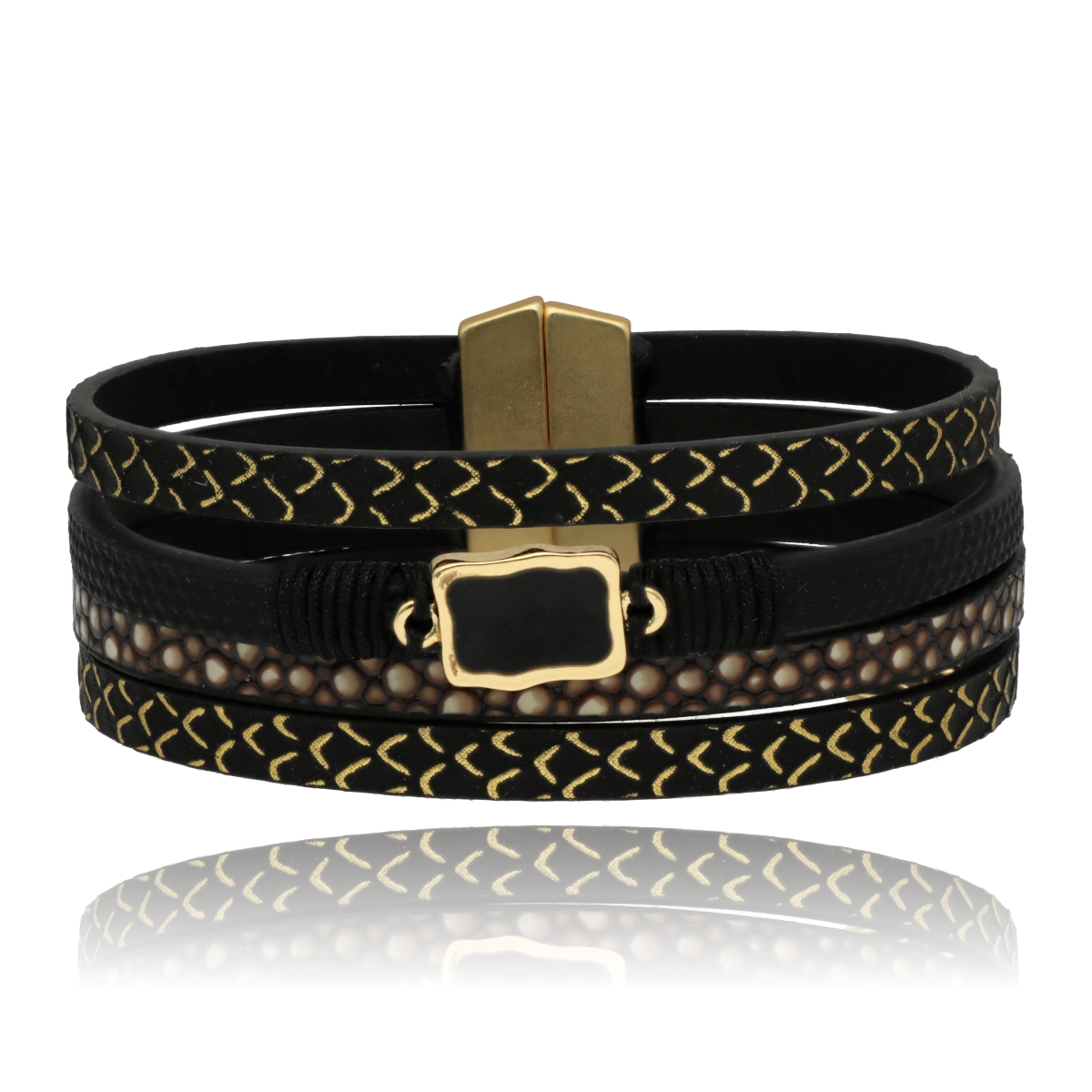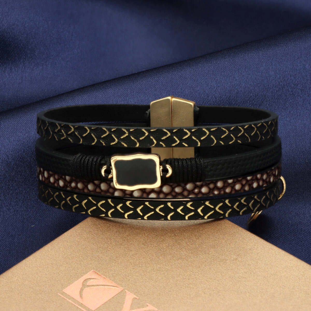 Elegancka bransoletka wykonana z wysokiej jakości skóry eko, zaprojektowana z myślą o nowoczesnych kobietach ceniących styl i wygodę. Wielowarstwowa struktura i metalowe akcenty nadają jej wyrazisty, ale ponadczasowy charakter.