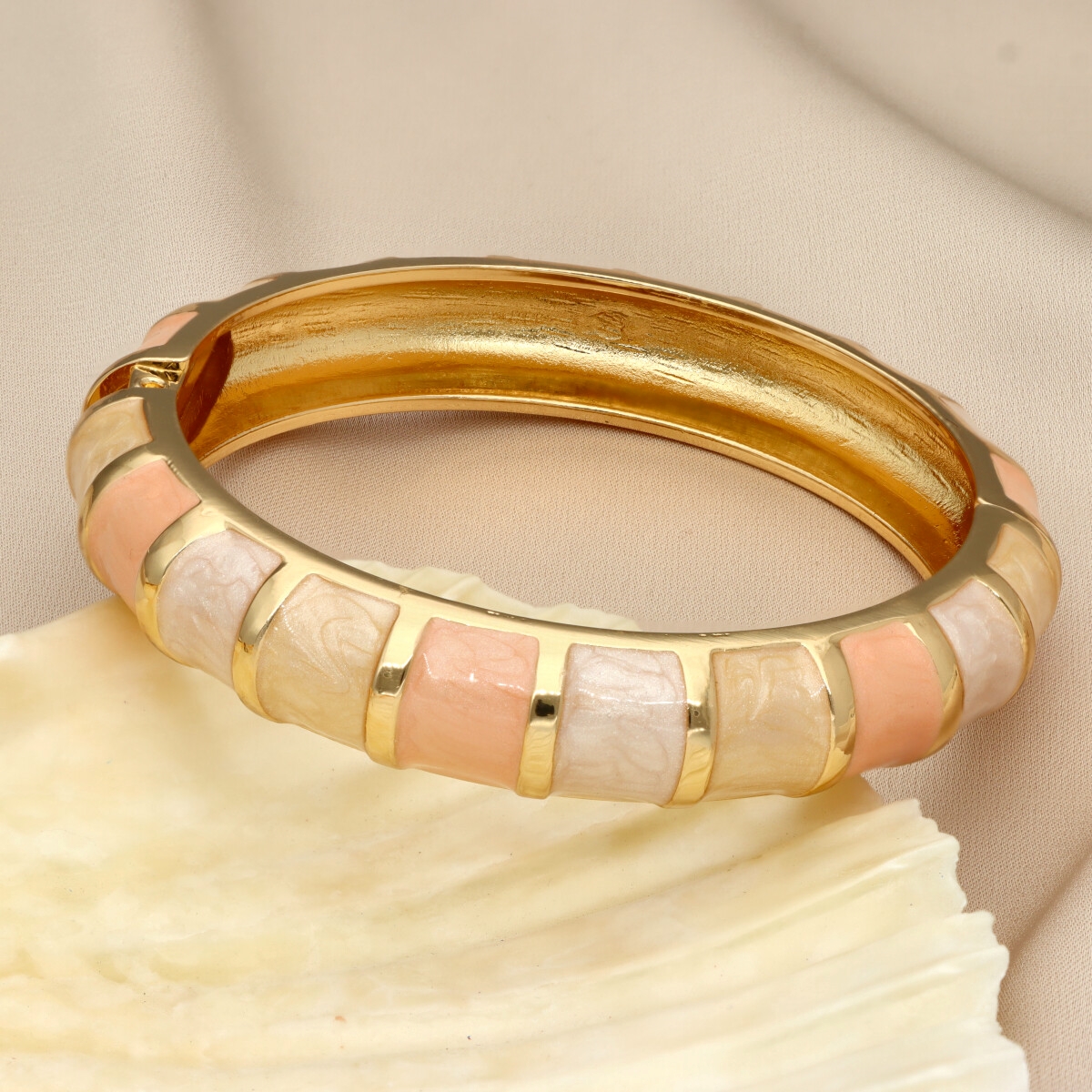 Opis produktu Stylowa bransoletka marki YVON to połączenie nowoczesnego designu z ponadczasową elegancją. Wyróżnia się geometrycznym wzorem z kolorową emalią, która nadaje jej charakteru i sprawia, że każda stylizacja zyskuje modowy akcent. Wykonana z wysokiej jakości metalu hipoalergicznego (zamak), jest bezpieczna dla skóry i komfortowa w codziennym noszeniu. Starannie wykończona powierzchnia oraz zestawienia kolorystyczne tworzą spójną, elegancką całość – od stonowanych po bardziej wyraziste warianty. Bransoletka posiada praktyczne, rozchylane zapięcie, które umożliwia szybkie i wygodne zakładanie oraz dopasowanie do nadgarstka. Dzięki temu model jest uniwersalny i doskonale sprawdzi się zarówno na co dzień, jak i jako uzupełnienie bardziej eleganckich stylizacji. To biżuteria dla kobiet, które lubią subtelny, ale zauważalny detal.