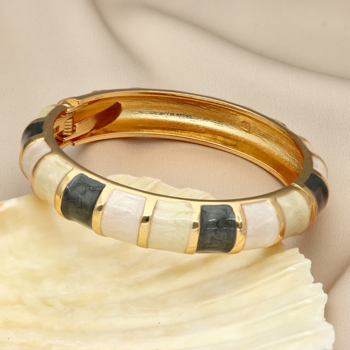 Stylowa bransoletka marki YVON to połączenie nowoczesnego designu z ponadczasową elegancją. Wyróżnia się geometrycznym wzorem z kolorową emalią, która nadaje jej charakteru i sprawia, że każda stylizacja zyskuje modowy akcent.