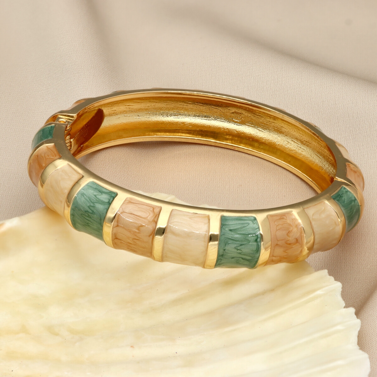Stylowa bransoletka marki YVON to połączenie nowoczesnego designu z ponadczasową elegancją. Wyróżnia się geometrycznym wzorem z kolorową emalią, która nadaje jej charakteru i sprawia, że każda stylizacja zyskuje modowy akcent.