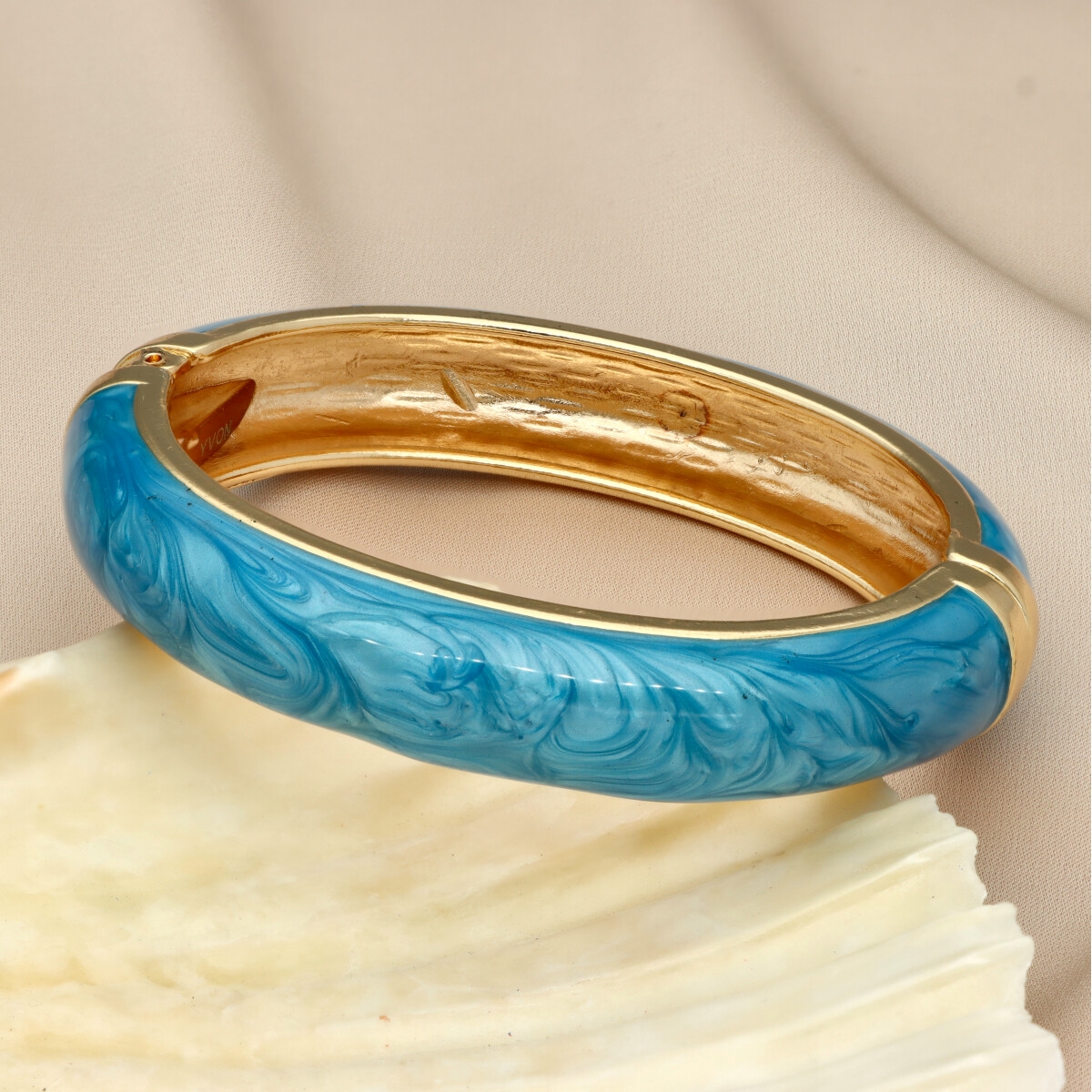Bransoletki wyróżniają się gładką formą oraz dekoracyjną, kolorową powierzchnią o delikatnie marmurkowym wykończeniu, dzięki czemu każda z nich prezentuje się niezwykle stylowo i nowocześnie. To biżuteria, która przyciąga uwagę, a jednocześnie pozostaje uniwersalna – świetnie komponuje się zarówno z casualowymi outfitami, jak i bardziej kobiecymi, letnimi lookami.