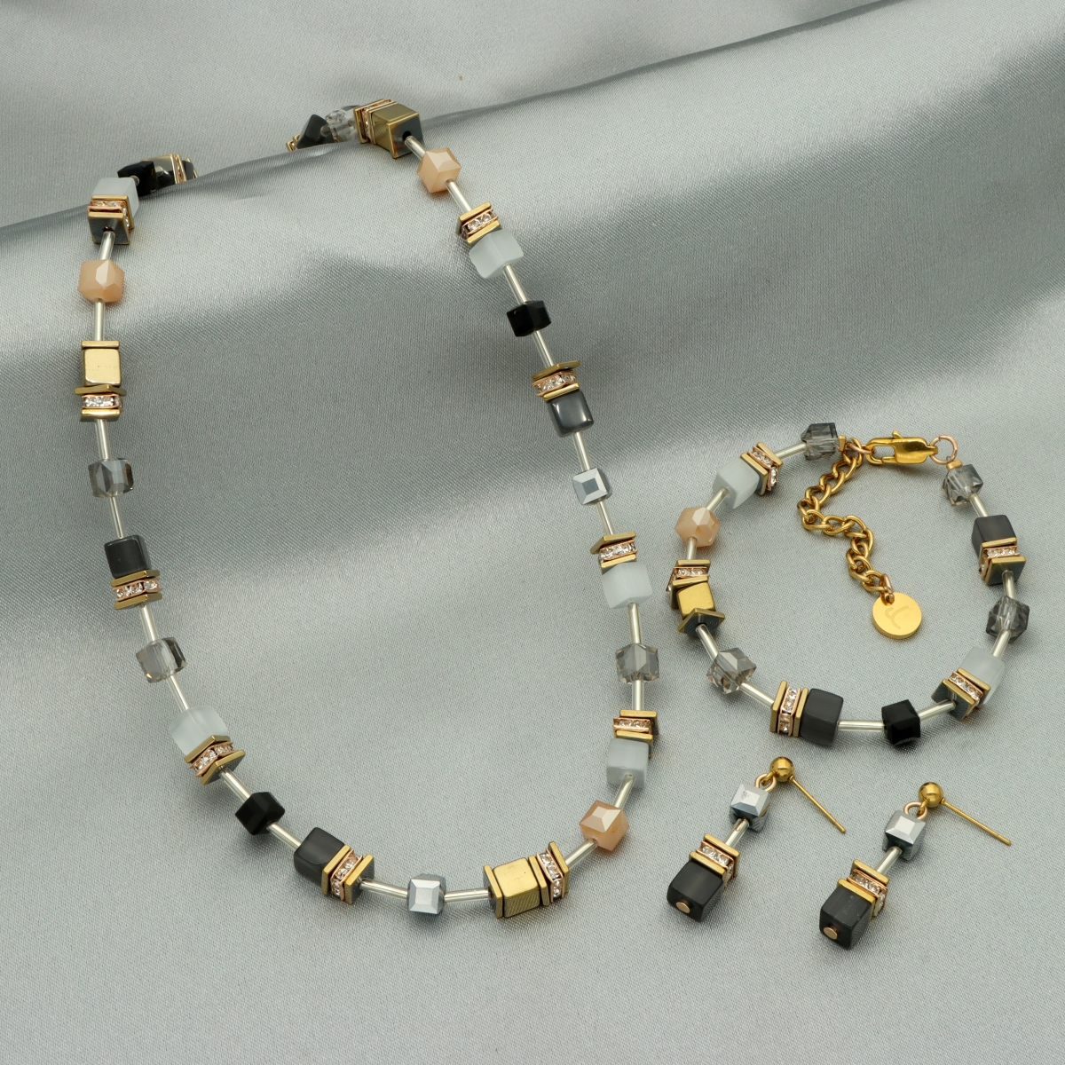 Bransoletka z linii YVON LOVELY SQUARE emanuje bajkowymi kolorami mieniących się kamieni naturalnych. Każda wersja kolorystyczna to świeża i zabawna kombinacja różnych odcieni naturalnego kwarcu. Całość wykonana jest z najszybszej jakości antyalergicznych metali: mosiądzu (elementy ozdobne) oraz stali szlachetnej (przedłużki, zapięcia). Blasku dopełnia minimalistyczne szkło fasetowane Długość: 18 cm + 5 cm regulacja. W eleganckim pudełku gratis. Szukaj do kompletu naszyjnika i kolczyków o tym samym indeksie.