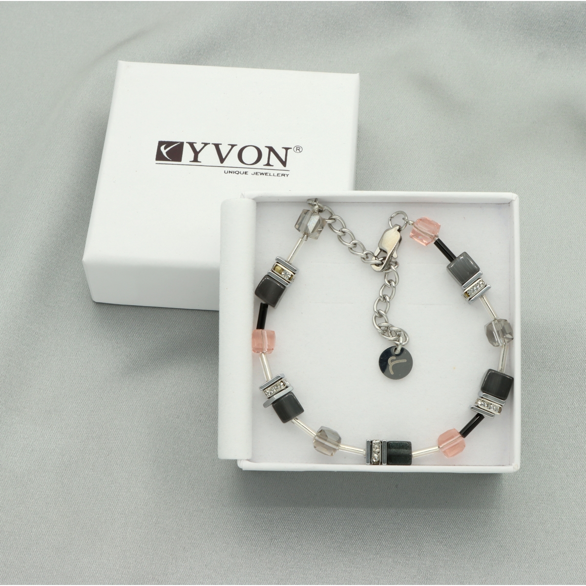 Bransoletka z linii YVON LOVELY SQUARE emanuje bajkowymi kolorami mieniących się kamieni naturalnych. Każda wersja kolorystyczna to świeża i zabawna kombinacja różnych odcieni naturalnego kwarcu. Całość wykonana jest z najszybszej jakości antyalergicznych metali: mosiądzu (elementy ozdobne) oraz stali szlachetnej (przedłużki, zapięcia). Blasku dopełnia minimalistyczne szkło fasetowane Długość: 18 cm + 5 cm regulacja. W eleganckim pudełku gratis. Szukaj do kompletu naszyjnika i kolczyków o tym samym indeksie.