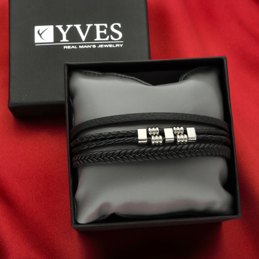Męska bransoleta wykonana z naturalnej skóry oraz stali szlachetnej 316L, odpornej na uszkodzenia i hipoalergicznej. Prosty, nowoczesny design sprawia, że pasuje zarówno na co dzień, jak i do bardziej eleganckich stylizacji.
