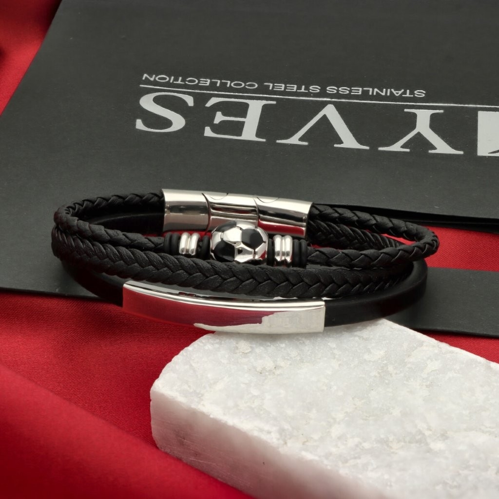 Męska bransoleta wykonana z naturalnej skóry oraz stali szlachetnej 316L, odpornej na uszkodzenia i hipoalergicznej. Prosty, nowoczesny design sprawia, że pasuje zarówno na co dzień, jak i do bardziej eleganckich stylizacji.