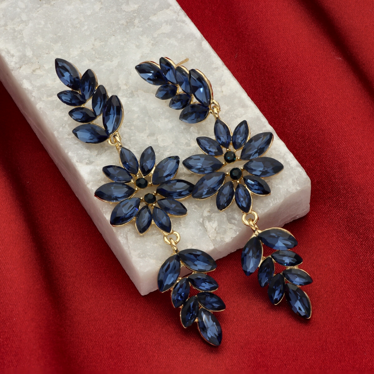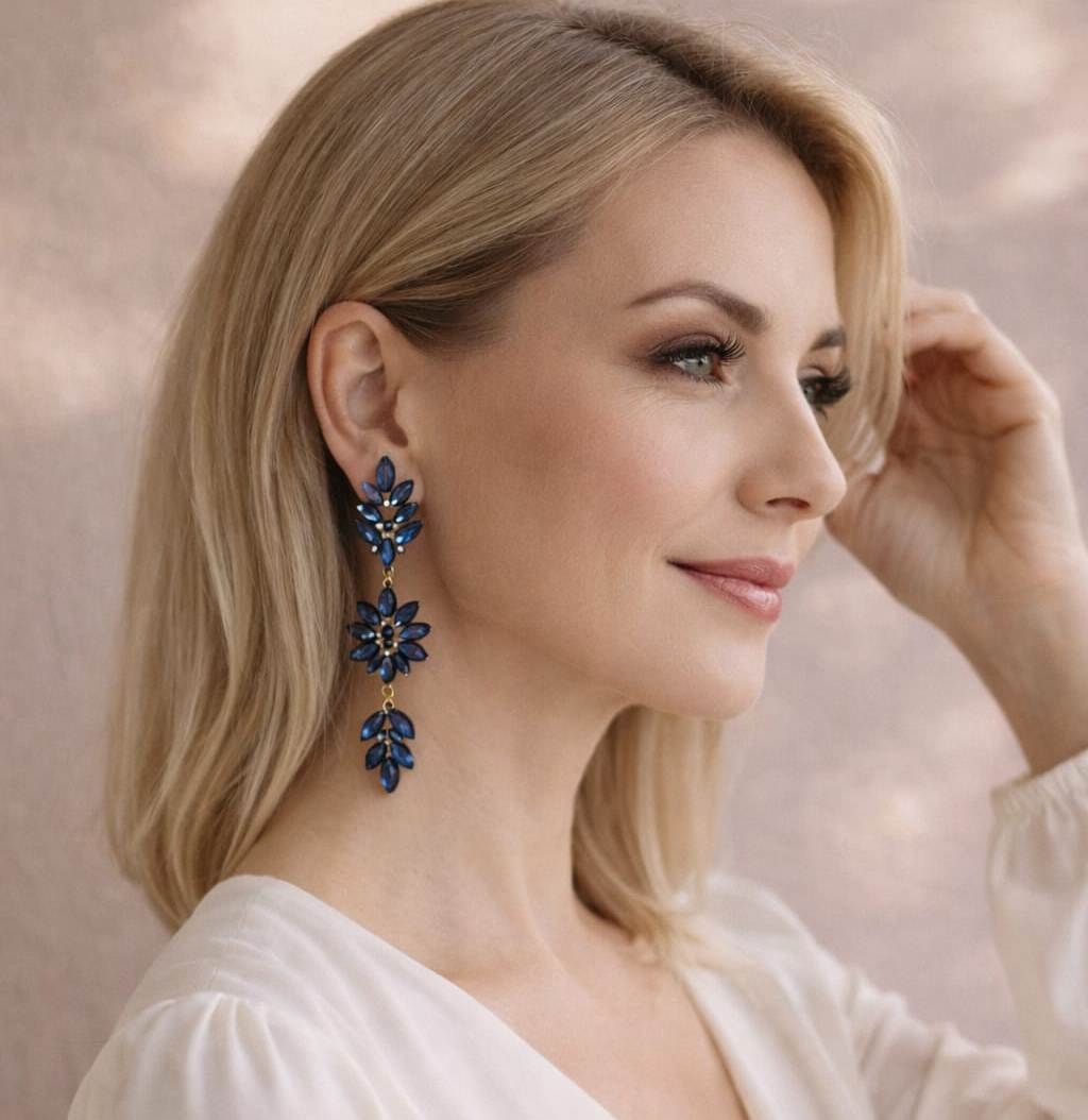 Kolczyki zostały wykonane z metalu hipoalergicznego oraz szkła fasetowanego, które efektownie odbija światło i nadaje całości szlachetnego charakteru. To doskonały wybór na przyjęcia, uroczystości rodzinne, wesela oraz inne wyjątkowe okazje.