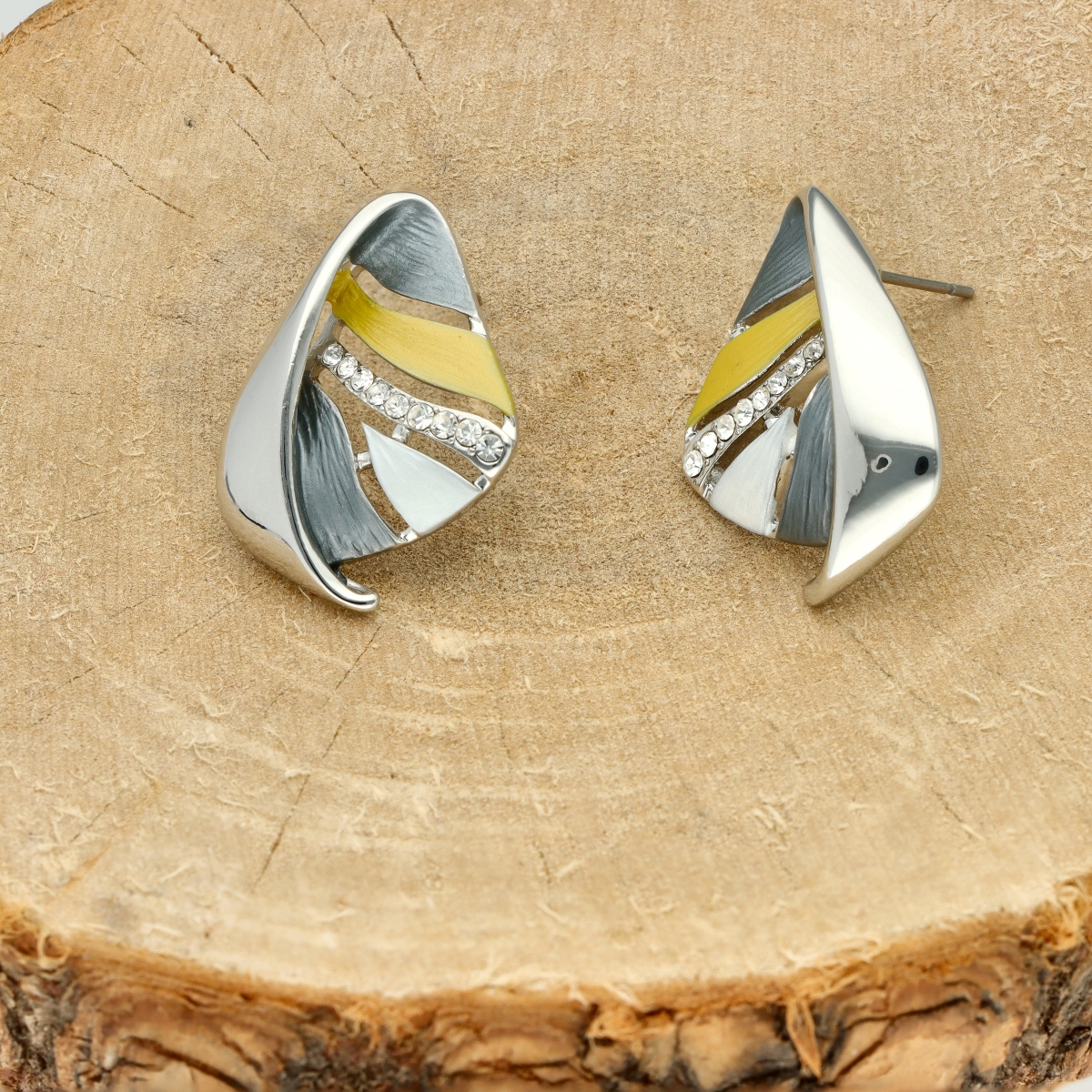 Eleganckie kolczyki wykonane z metalu antyalergicznego i kolorowej żywicy. Długosć ok. 2 cm. Szukaj do kompletu bransoletki i naszyjnika o tym samym indeksie numerycznym. Jewelry made of antiallergic metal and enamel.