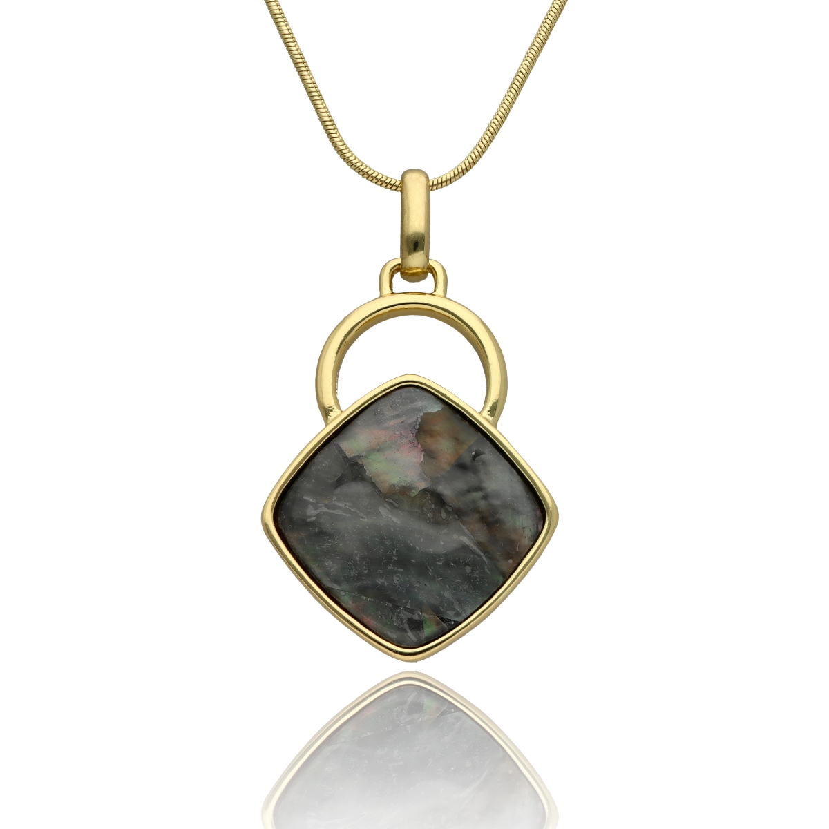 Elegancki, długi naszyjnik wykonany z metalu antyalergicznego, ozdobiony efektowną zawieszką o długości ok. 5 cm. Zawieszka została wykonana z naturalnej muszli szarej, tworząc harmonijne, przyciągające uwagę połączenie.