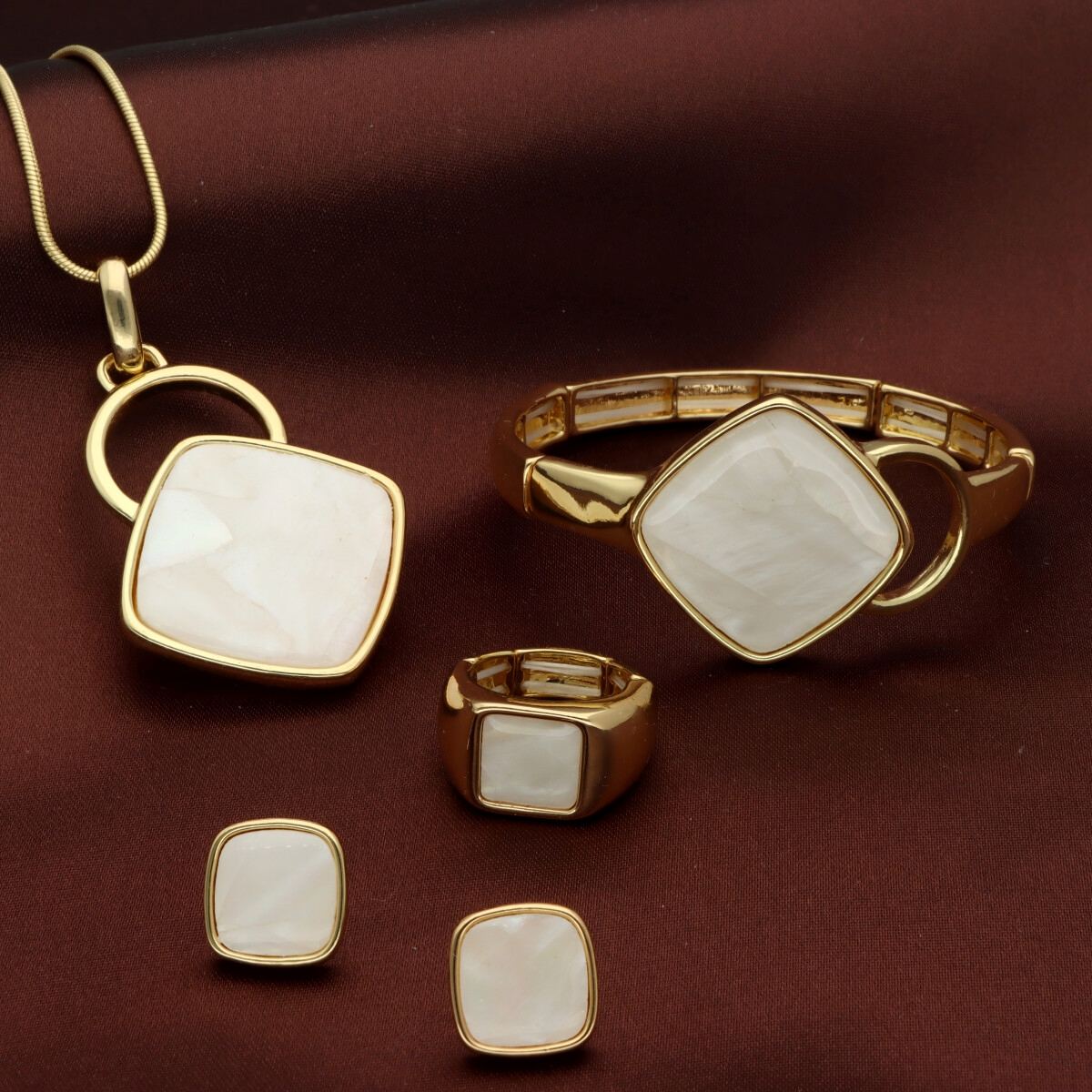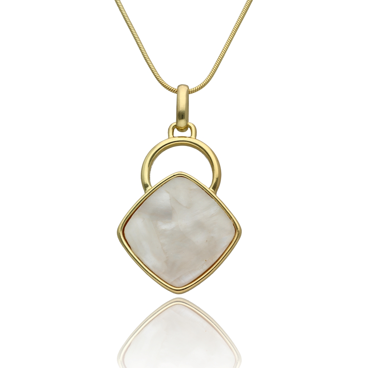 Naszyjnik z muszli naturalnej mlecznej – długość 70 cm + regulacja Elegancki, długi naszyjnik wykonany z metalu antyalergicznego, ozdobiony efektowną zawieszką o długości ok. 5 cm. Zawieszka została wykonana z naturalnej muszli mlecznej, tworząc harmonijne, przyciągające uwagę połączenie. Naszyjnik zapakowany jest w efektowne czerwone pudełko. Do kompletu proponujemy bransoletkę (B), kolczyki (E) oraz pierścionek (R) o tym samym indeksie numerycznym.