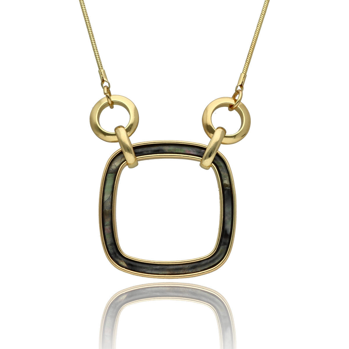 Elegancki, krótki naszyjnik wykonany z metalu antyalergicznego, ozdobiony efektowną zawieszką o długości ok. cm. Zawieszka została wykonana z naturalnej muszli szarej, tworząc harmonijne, przyciągające uwagę połączenie.