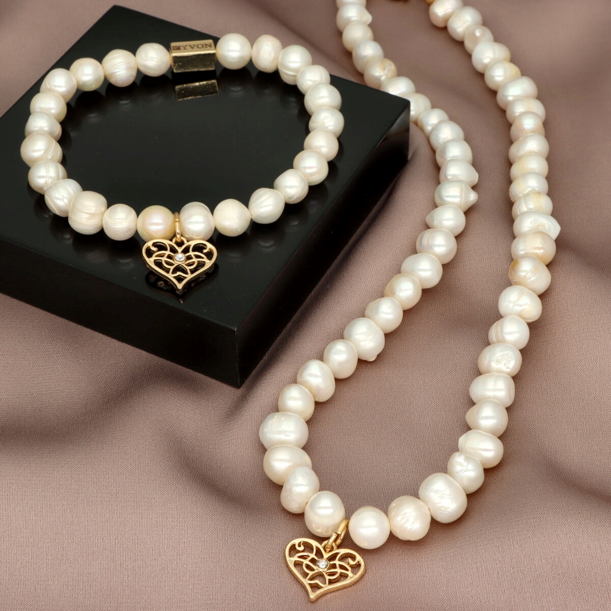 Naszyjnik wykonany z NATURALNYCH PEREŁ SŁODKOWODNYCH o subtelnym, naturalnym połysku. Każda perła różni się kształtem, co podkreśla autentyczny charakter biżuterii. Zapięcie oraz elementy wykończeniowe wykonane z hipoalergicznego metalu (mosiądz). Długość naszyjnika: 42 cm + 8 cm przedłużka Możliwość skompletowania z bransoletką. W cenie produktu znajduje się ekskluzywne pudełko. Materiał: – perły naturalne słodkowodne – hipoalergiczny metal – mosiądz.