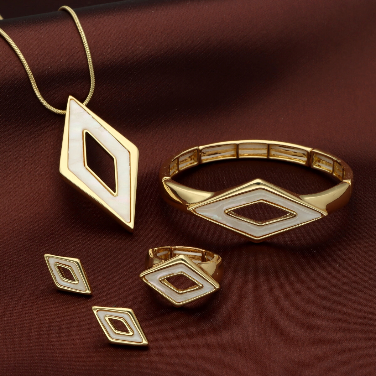 Pierścionek z muszli naturalnej mlecznej – rozciągliwy. Elegancki pierścionek / damski sygnet wykonany z metalu antyalergicznego – bezpieczny nawet dla wrażliwej skóry, ozdobiony naturalną muszlą mleczną. Pierścionek świetnie komponuje się z naszyjnikiem, bransoletką i kolczykami z tej samej serii. Idealne jako samodzielna ozdoba lub element efektownego zestawu biżuterii. Produkt zapakowany jest w efektowne czerwone pudełko. Do kompletu proponujemy Naszyjnik (N), bransoletkęi (B) oraz kolczyki (E) o tym samym indeksie numerycznym.