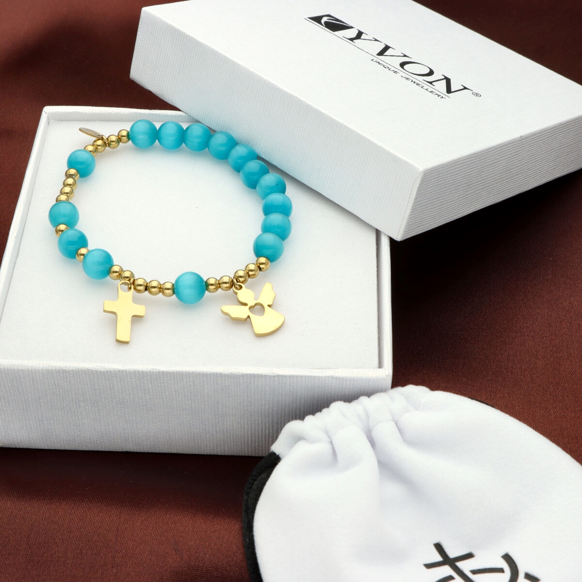 Zestaw w eleganckim pudełku i z sakiewką GRATIS. Idealny pomysł na Komunię Świętą.