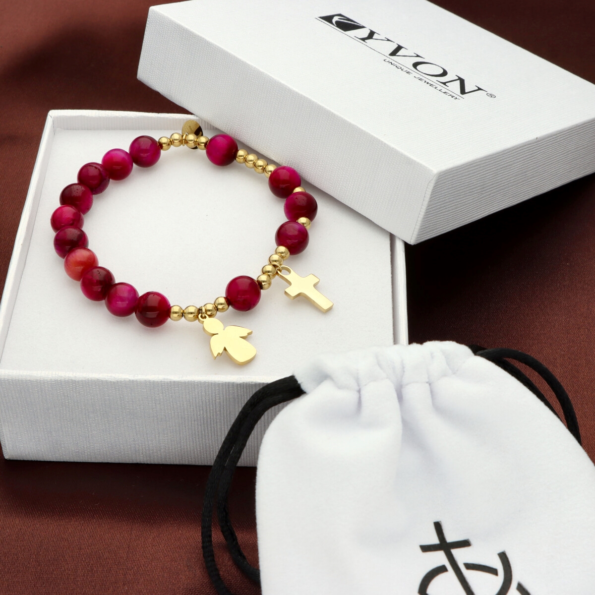 Zestaw w eleganckim pudełku i z sakiewką GRATIS. Idealny pomysł na Komunię Świętą.