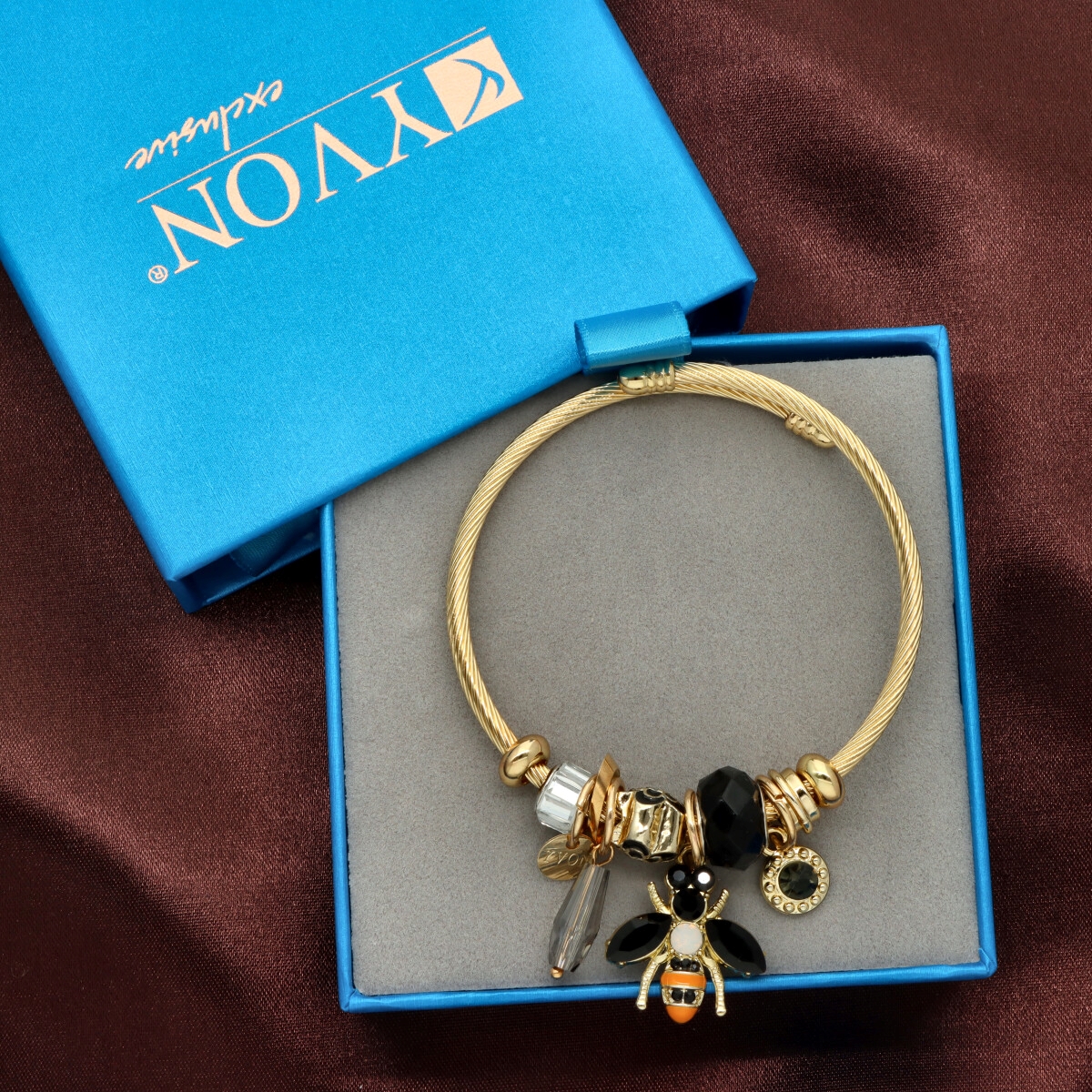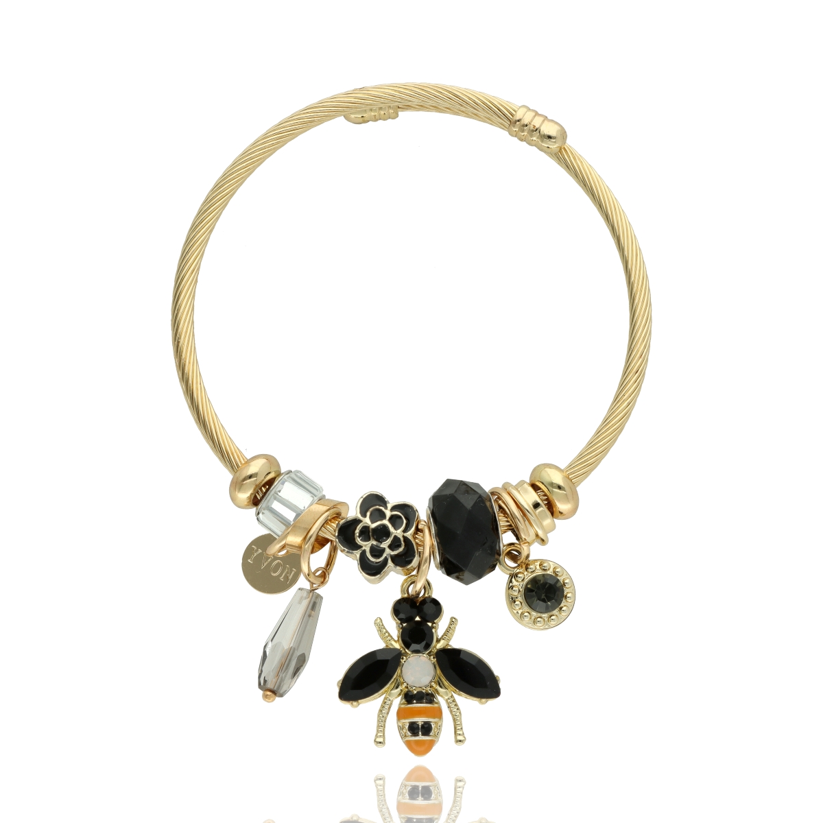 Urocza bransoletka wykonana ze stali szlachetnej (obręcz) oraz zamaku, szkła fasetowanego, ceramiki i emalii (czarmsy). W eleganckim PUDEŁECZKU GRATIS - idealny pomysł na prezent. Biżuteria hypoalergiczna.