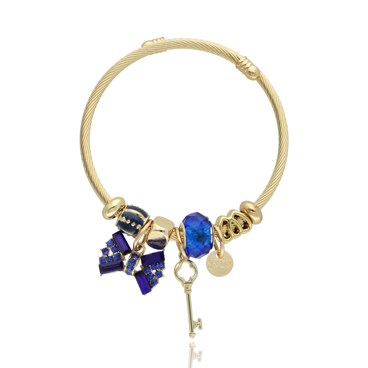 Urocza bransoletka wykonana ze stali szlachetnej (obręcz) oraz zamaku, szkła fasetowanego, ceramiki i emalii (czarmsy). W eleganckim PUDEŁECZKU GRATIS - idealny pomysł na prezent.