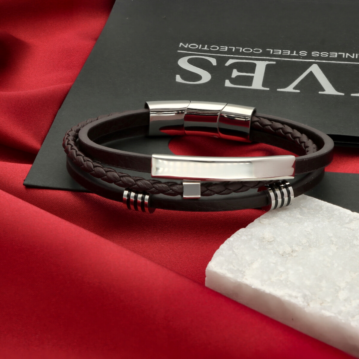 Męska bransoleta wykonana z naturalnej skóry oraz stali szlachetnej 316L, odpornej na uszkodzenia i hipoalergicznej. Prosty, nowoczesny design sprawia, że pasuje zarówno na co dzień, jak i do bardziej eleganckich stylizacji.