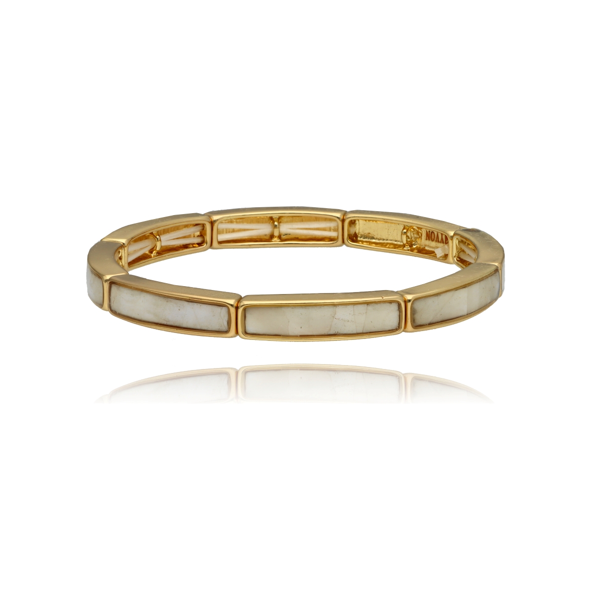 Bransoletka z muszli naturalnej mlecznej. Stylowa bransoletka na elastycznej gumce, wykonana z metalowych, antyalergicznych elementów i muszli naturalnej mlecznej. Bransoletka dopasowuje się do nadgarstka, zapewniając komfort noszenia. Doskonale komponuje się z naszyjnikiem i kolczykami z tej samej serii – idealna zarówno na co dzień, jak i na specjalne okazje. Produkt zapakowany jest w efektowne czerwone pudełko. Do kompletu proponujemy Naszyjnik (N), kolczyki (E) oraz pierścionek (R) o tym samym indeksie numerycznym.