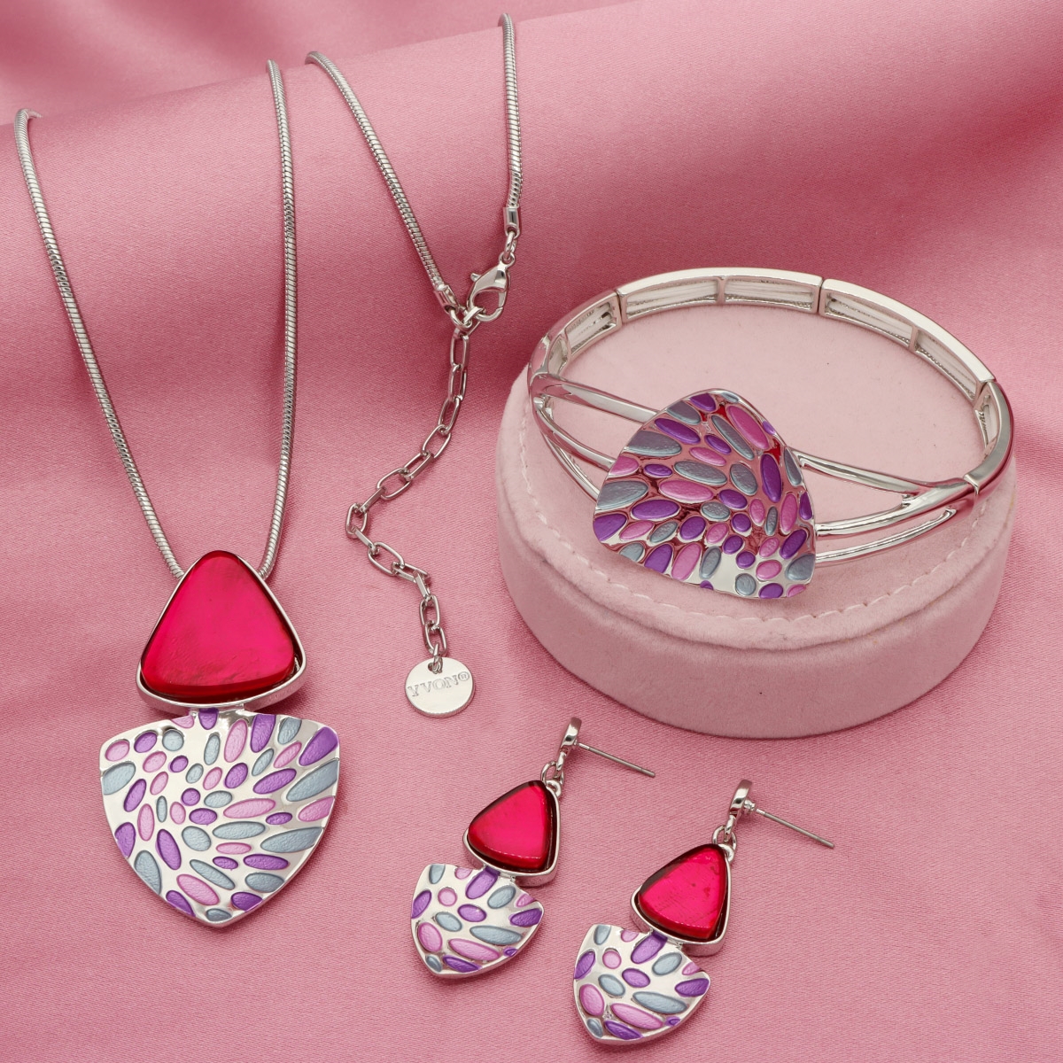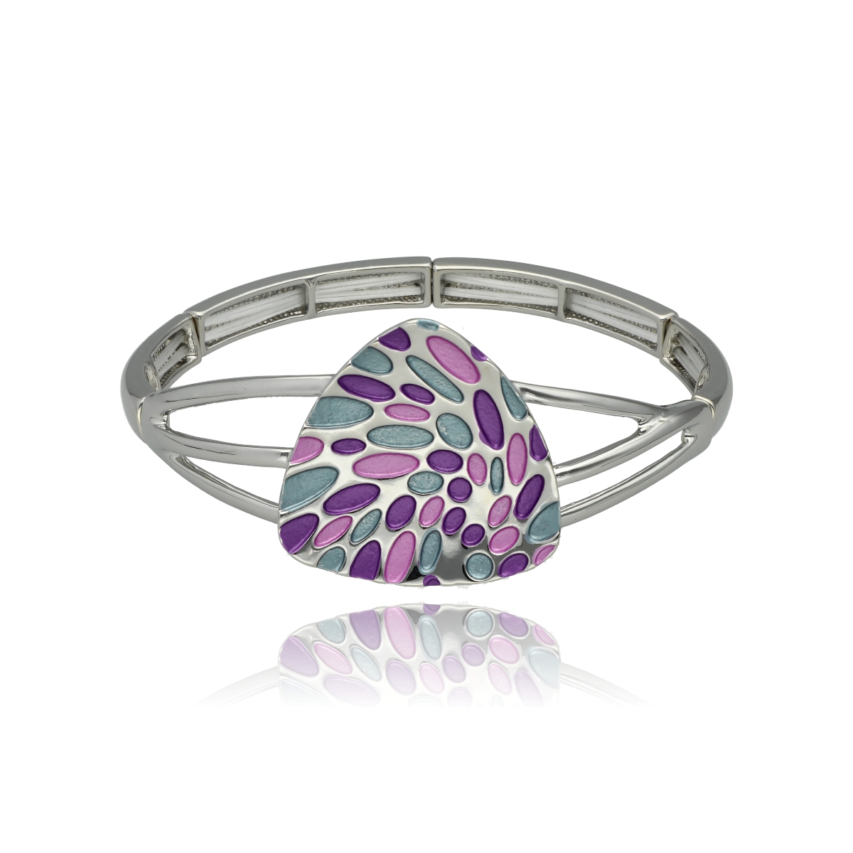 Elegancka bransoletka wykonana z metalu antyalergicznego i barwionej muszli natualnej. Rozmiar uniwersalny (na rozciągliwych gumkach). Szukaj do kompletu naszyjnika i kolczyków o tym samym indeksie numerycznym.