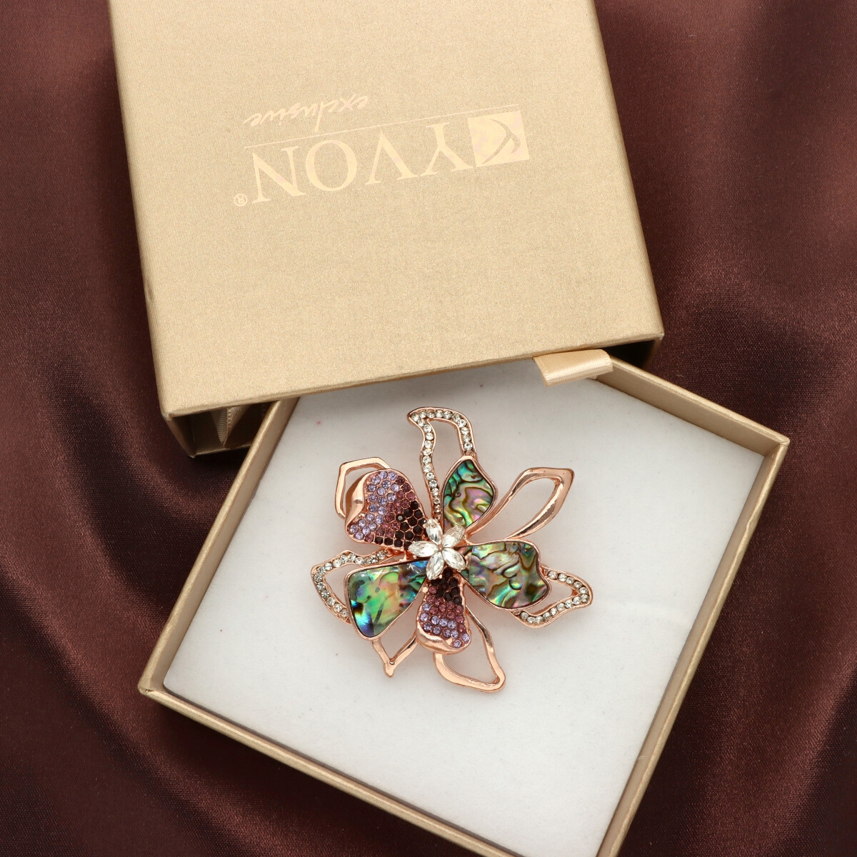 Elegancka broszka wykonana z wysokiej jakości szkła fasetowanego oraz metalu hypoalergicznego. Subtelny dodatek, który idealnie wpisuje się w jesienne stylizacje.
