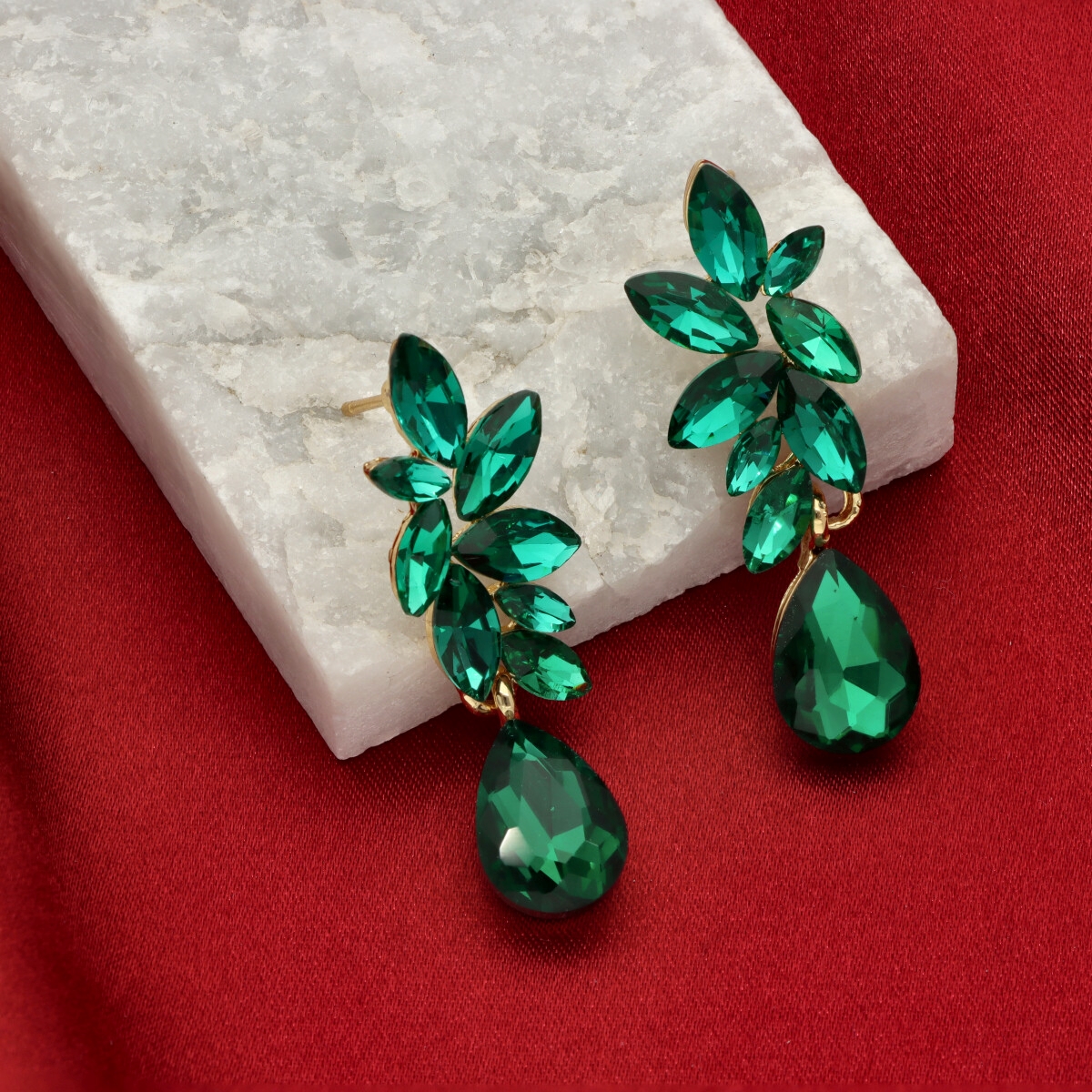 Kolczyki zostały wykonane z metalu hipoalergicznego oraz szkła fasetowanego, które efektownie odbija światło i nadaje całości szlachetnego charakteru. To doskonały wybór na przyjęcia, uroczystości rodzinne, wesela oraz inne wyjątkowe okazje.