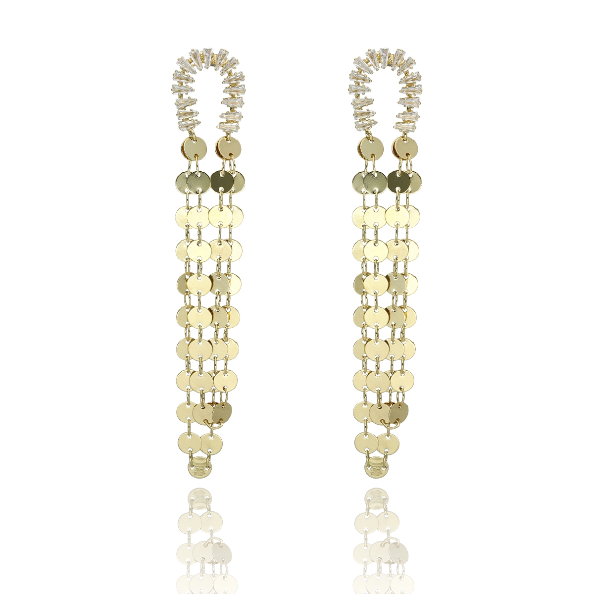 Wyjątkowe kolczyki wykonane z hipoalergicznego metalu na bazie mosiądzu, ozdobione wysokiej jakości cyrkoniami, które pięknie odbijają światło i nadają biżuterii eleganckiego blasku. To idealny wybór dla osób, które cenią sobie wyrafinowane dodatki podkreślające charakter stylizacji. Kolczyki są lekkie, starannie wykończone i doskonale prezentują się zarówno na co dzień, jak i przy specjalnych okazjach. Długość: ok. 8,5 cm