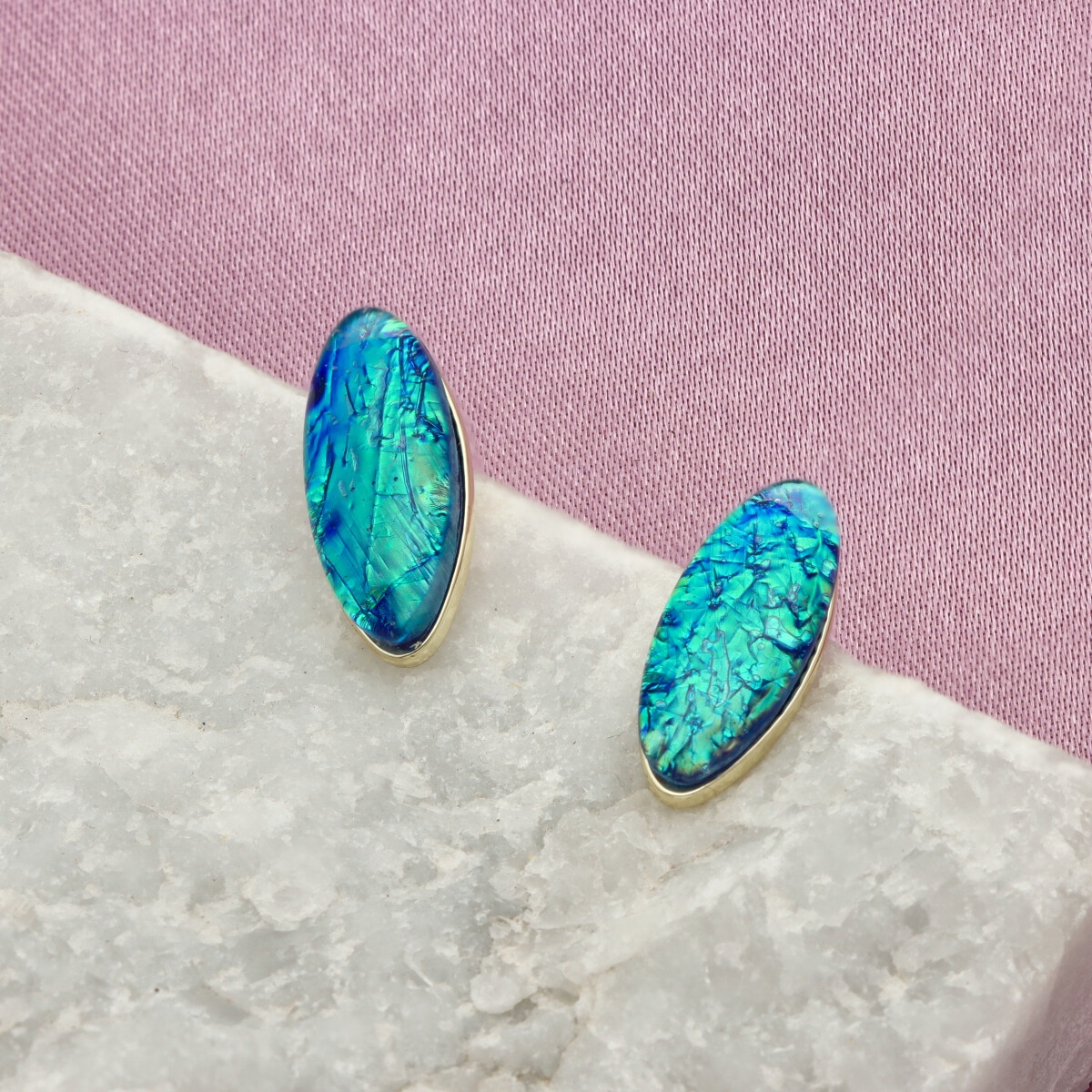 Wykonane z hipoalergicznego metalu (zamak – stop cynku, bezpieczny dla wrażliwej skóry) oraz żywicy z efektem głębi, która delikatnie odbija światło i nadaje im wyjątkowego charakteru.