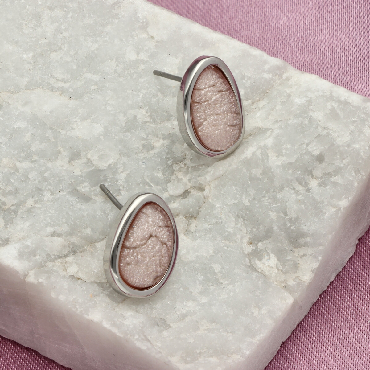 Wykonane z hipoalergicznego metalu (zamak – stop cynku, bezpieczny dla wrażliwej skóry), ozdobione żywicą z efektą głębi.