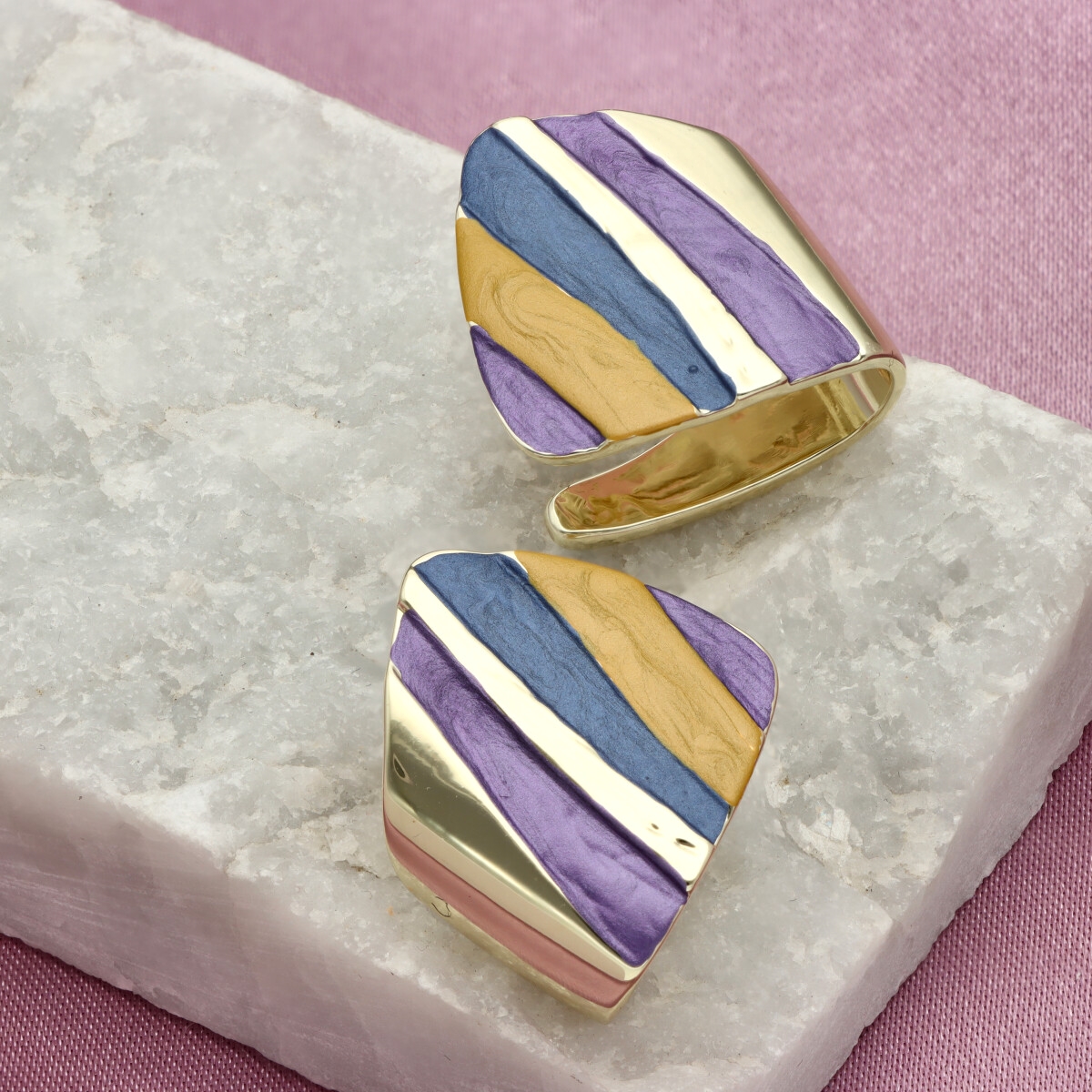 Wykonane z hipoalergicznego metalu (zamak – stop cynku, bezpieczny dla wrażliwej skóry) oraz kolorowej emalii o subtelnym efekcie głębi.