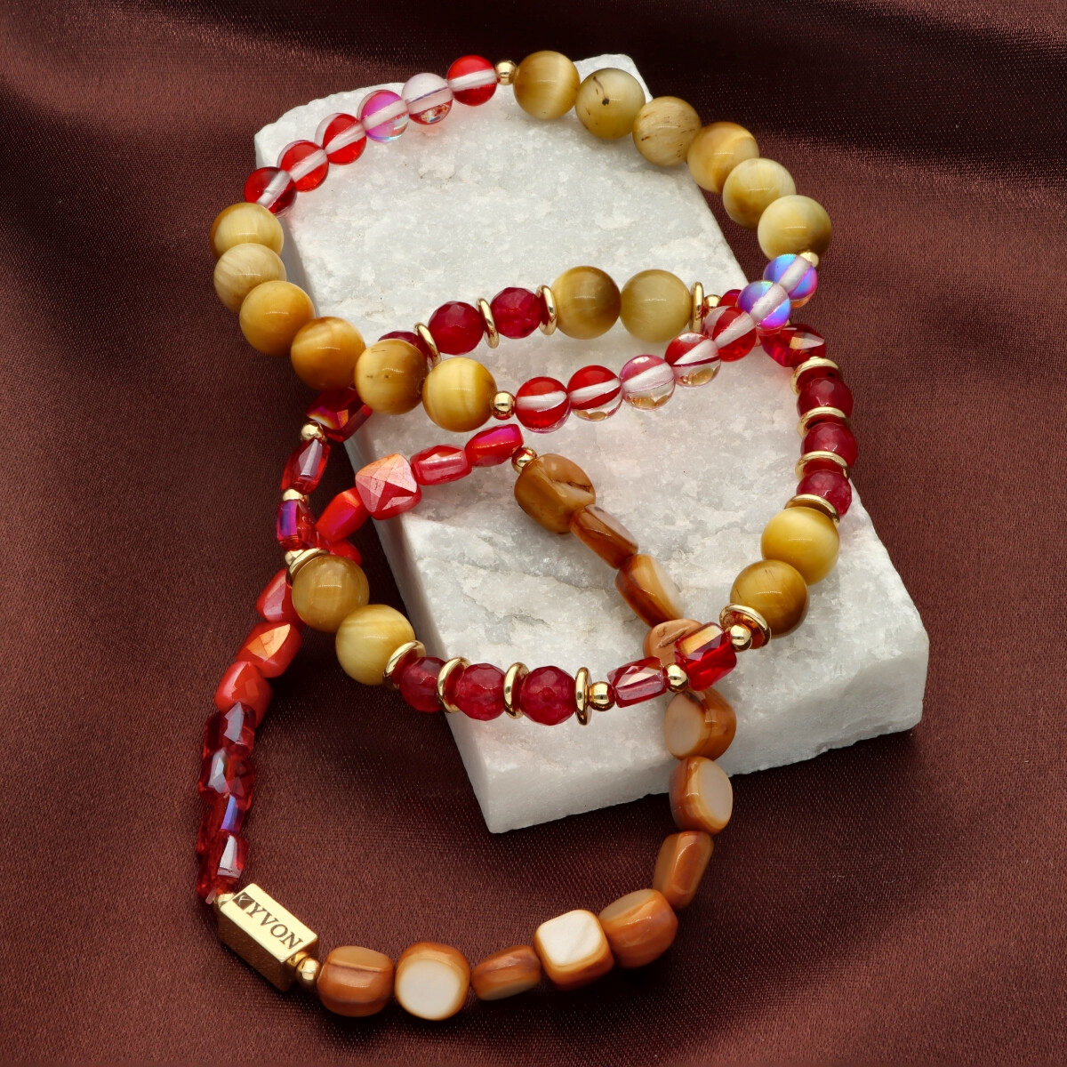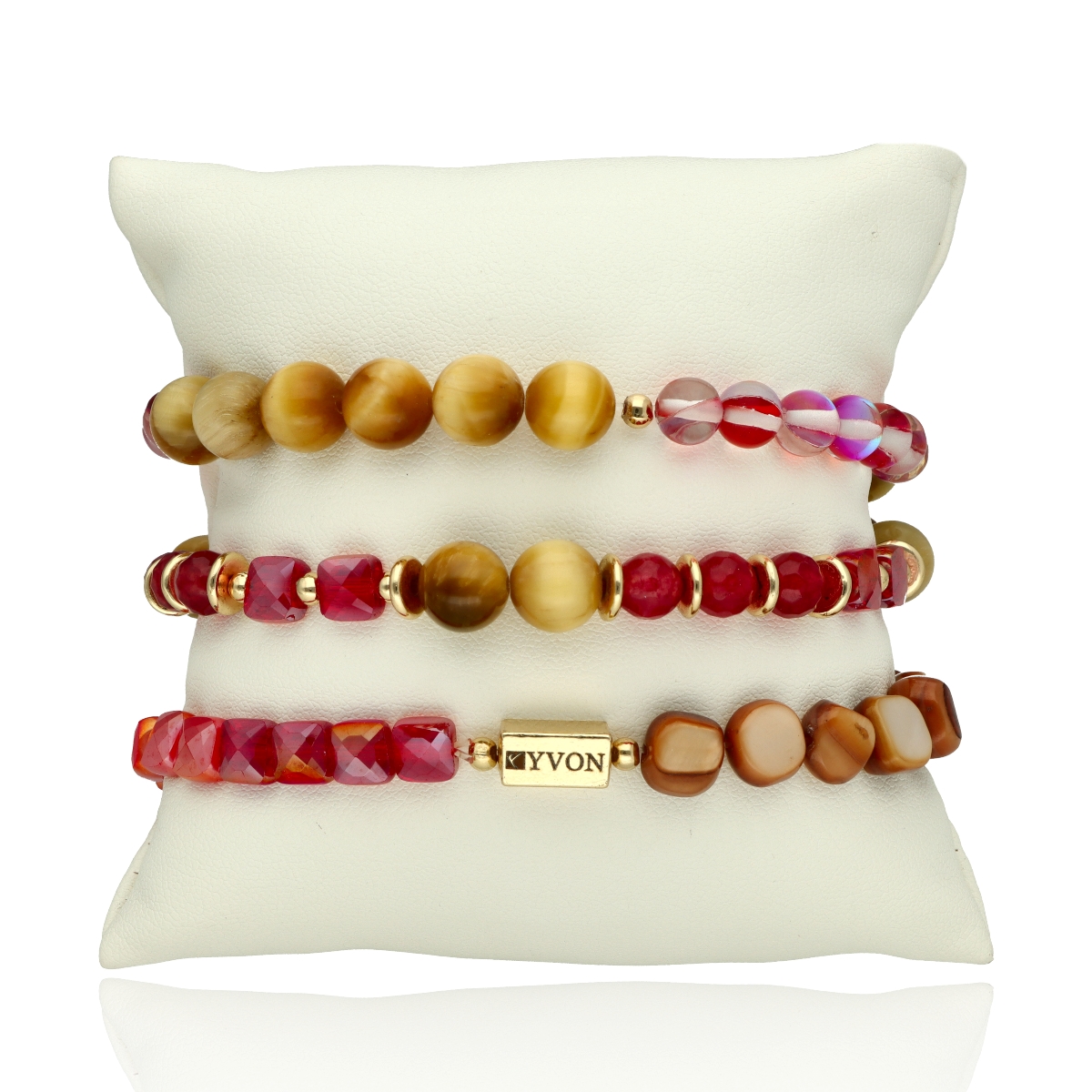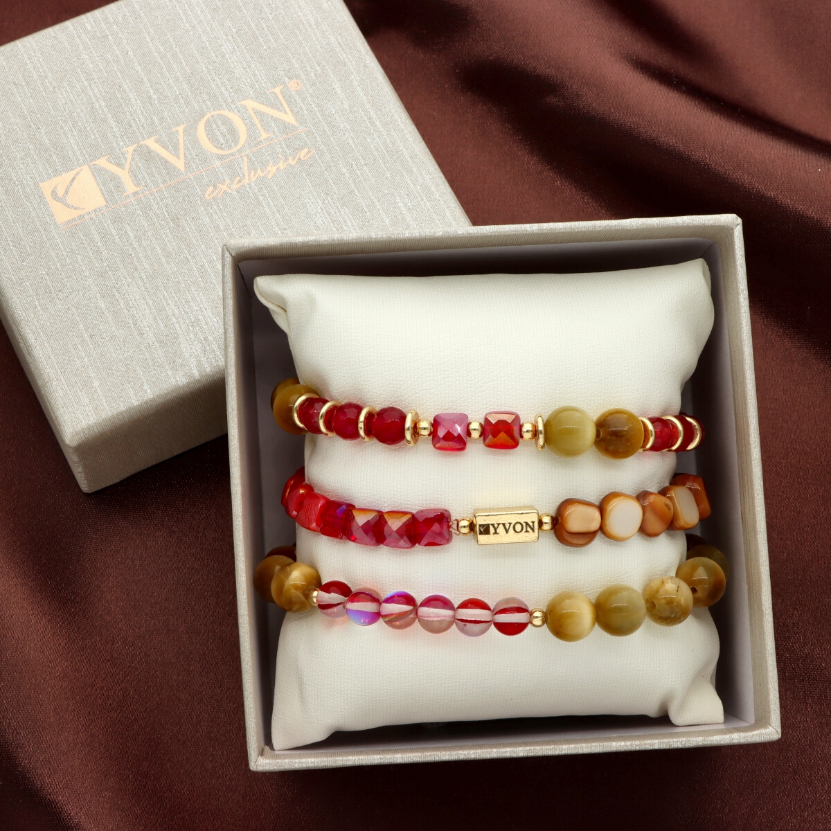 Zestaw trzech bransoletek z KAMIENIAMI NATURALNYMI (tygrysie oko złote, labradoryt), który łączy w sobie klasyczną elegancję i najwyższą jakość wykonania. Każdy element został starannie dobrany – od antyalergicznego mosiądzu, przez elementy z kamieni, aż po misternie fasetowane koraliki z kryształu górskiego. Subtelne połączenie tych materiałów tworzy niepowtarzalny, ponadczasowy dodatek. Bransoletki zapakowane są w eleganckie pudełeczko z miękką poduszeczką, co sprawia, że zestaw doskonale nadaje się na prezent.