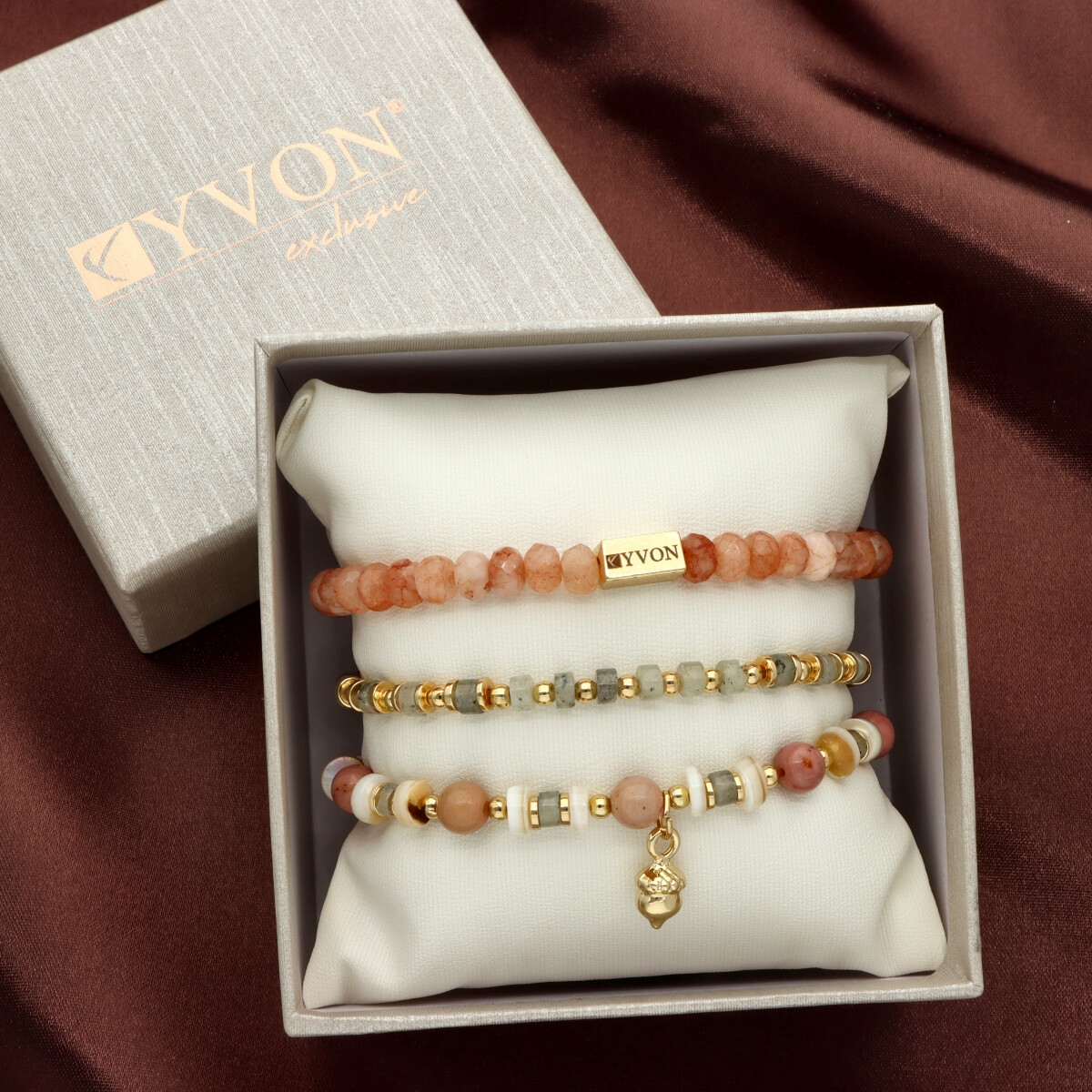 Zestaw trzech bransoletek z KAMIENIAMI NATURALNYMI (KWARC), który łączy w sobie klasyczną elegancję i najwyższą jakość wykonania. Każdy element został starannie dobrany – od antyalergicznego mosiądzu, przez elementy z kamieni, aż po misternie fasetowane koraliki z kryształu górskiego. Subtelne połączenie tych materiałów tworzy niepowtarzalny, ponadczasowy dodatek. Bransoletki zapakowane są w eleganckie pudełeczko z miękką poduszeczką, co sprawia, że zestaw doskonale nadaje się na prezent.