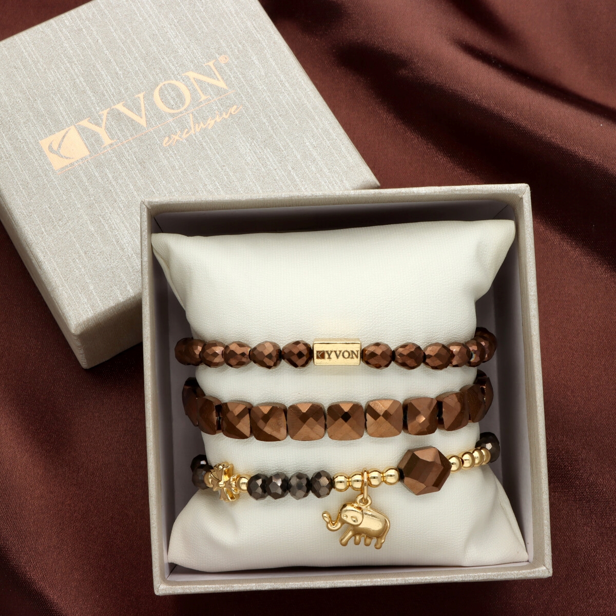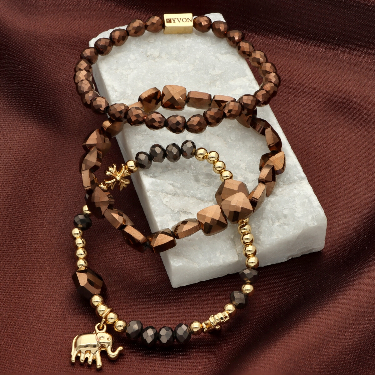 Zestaw trzech uroczych bransoletek, który łączy w sobie klasyczną elegancję i najwyższą jakość wykonania. Każdy element został starannie dobrany – od antyalergicznego mosiądzu, aż po misternie fasetowane koraliki z kryształu górskiego. Subtelne połączenie tych materiałów tworzy niepowtarzalny, ponadczasowy dodatek. Bransoletki zapakowane są w eleganckie pudełeczko z miękką poduszeczką, co sprawia, że zestaw doskonale nadaje się na prezent.