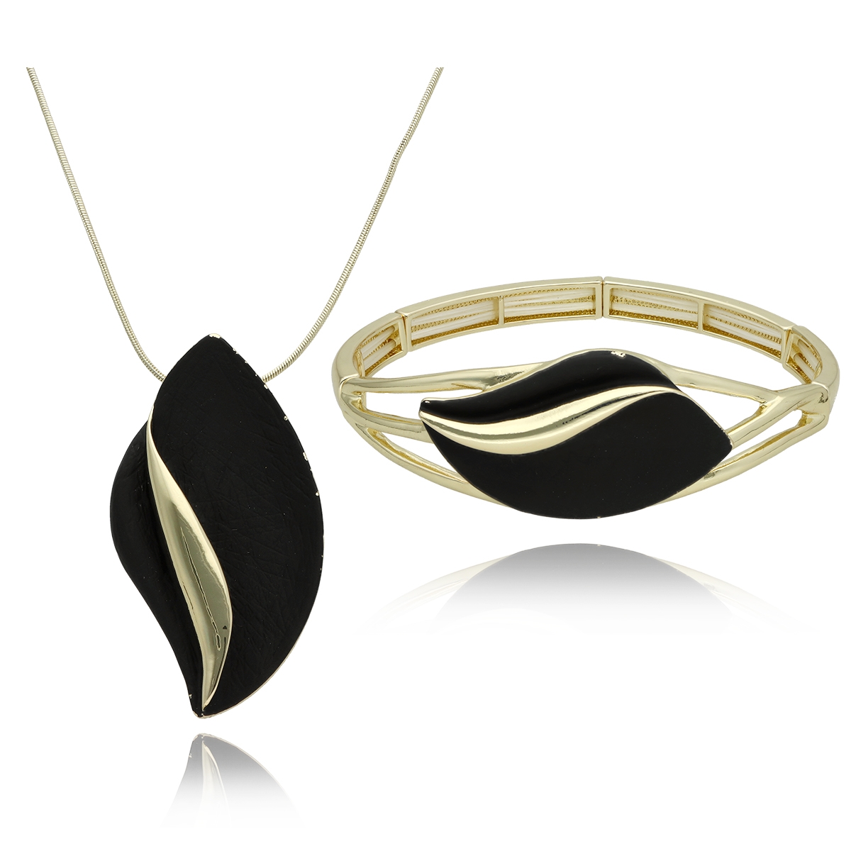 Ekskluzywny komplet biżuterii z linii YVON Exclusive, składający się z eleganckiego naszyjnika oraz dopasowanej bransolety. Zestaw wykonany jest z hipoalergicznego stopu cynku (zamak) oraz ręcznie nanoszonej emalii. Starannie polerowane elementy nadają biżuterii nowoczesny, luksusowy charakter, jednocześnie zachowując lekkość i komfort noszenia.
