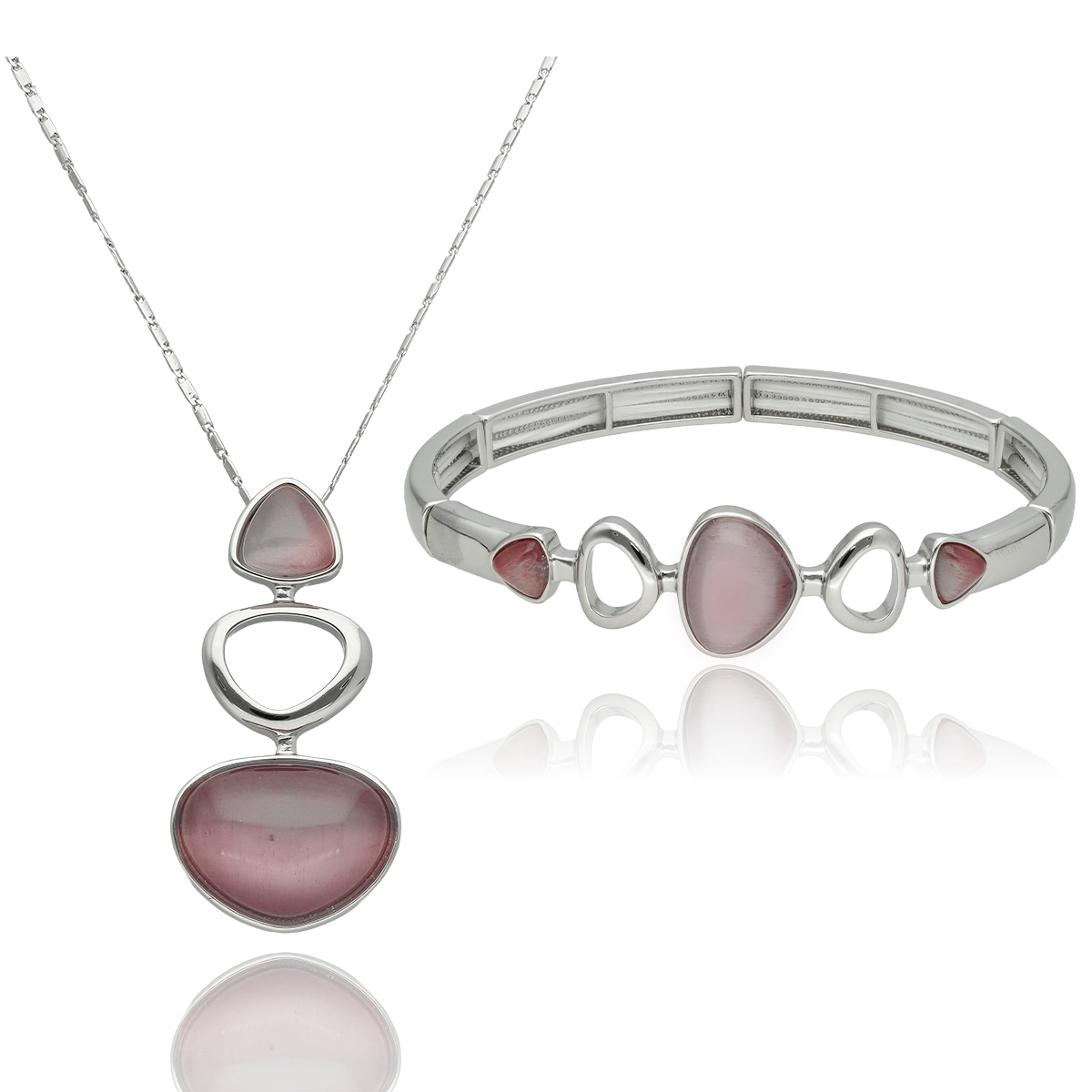 Ekskluzywny komplet biżuterii z linii YVON Exclusive, składający się z eleganckiego naszyjnika oraz dopasowanej bransolety. Zestaw wykonany jest z hipoalergicznego stopu cynku (zamak) oraz KWARCU. Starannie polerowane elementy nadają biżuterii nowoczesny, luksusowy charakter, jednocześnie zachowując lekkość i komfort noszenia.