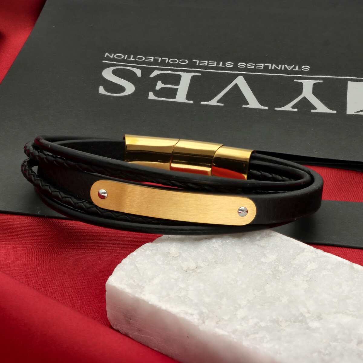 Męska bransoleta wykonana z naturalnej skóry oraz stali szlachetnej 316L, odpornej na uszkodzenia i hipoalergicznej. Prosty, nowoczesny design sprawia, że pasuje zarówno na co dzień, jak i do bardziej eleganckich stylizacji.