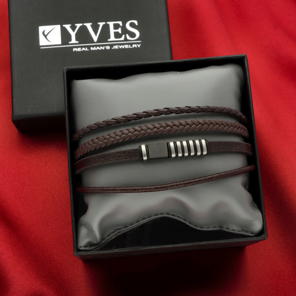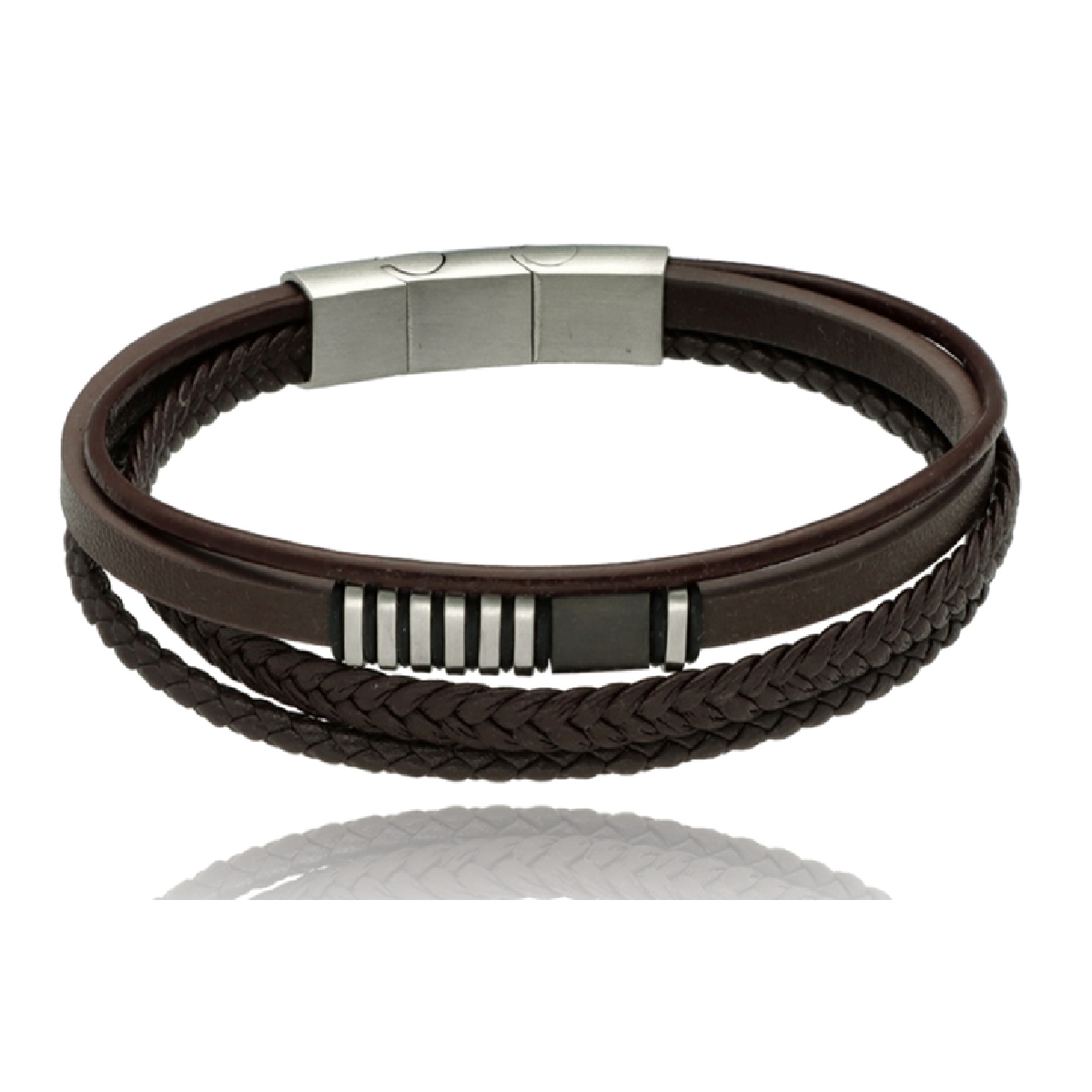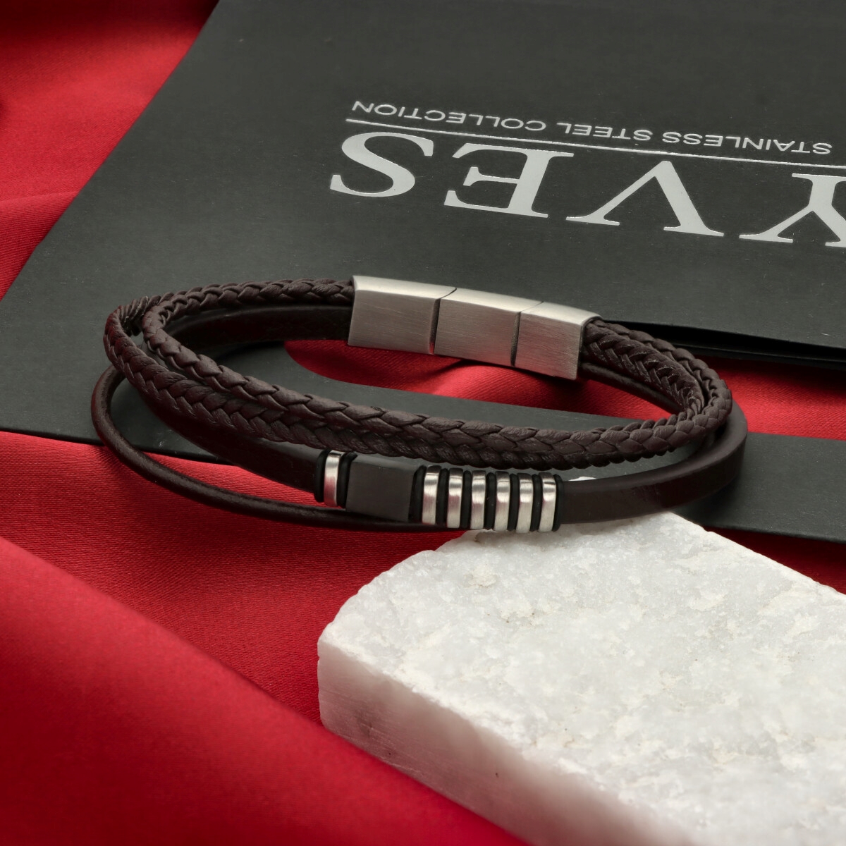 Męska bransoleta wykonana z naturalnej skóry oraz stali szlachetnej 316L, odpornej na uszkodzenia i hipoalergicznej. Prosty, nowoczesny design sprawia, że pasuje zarówno na co dzień, jak i do bardziej eleganckich stylizacji.