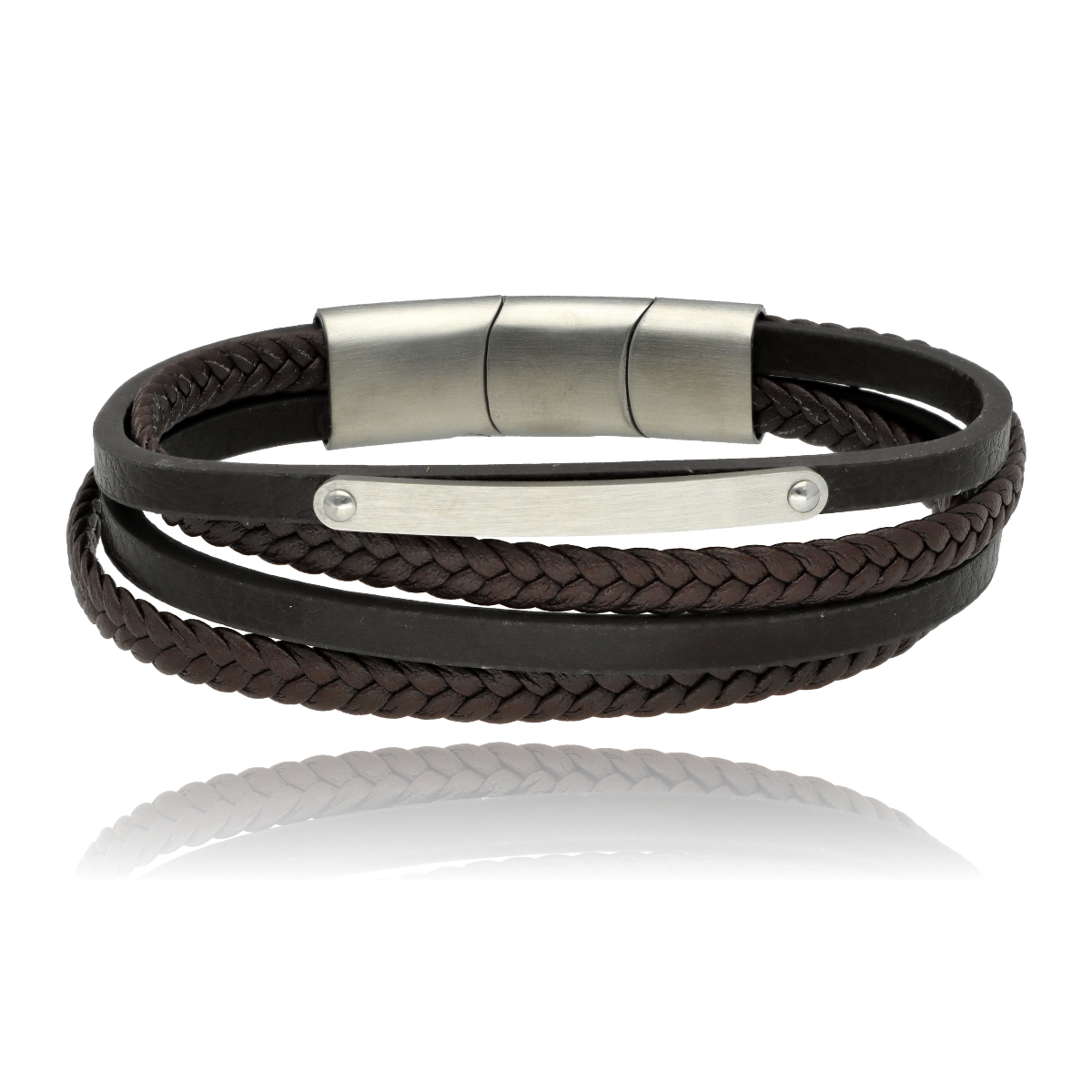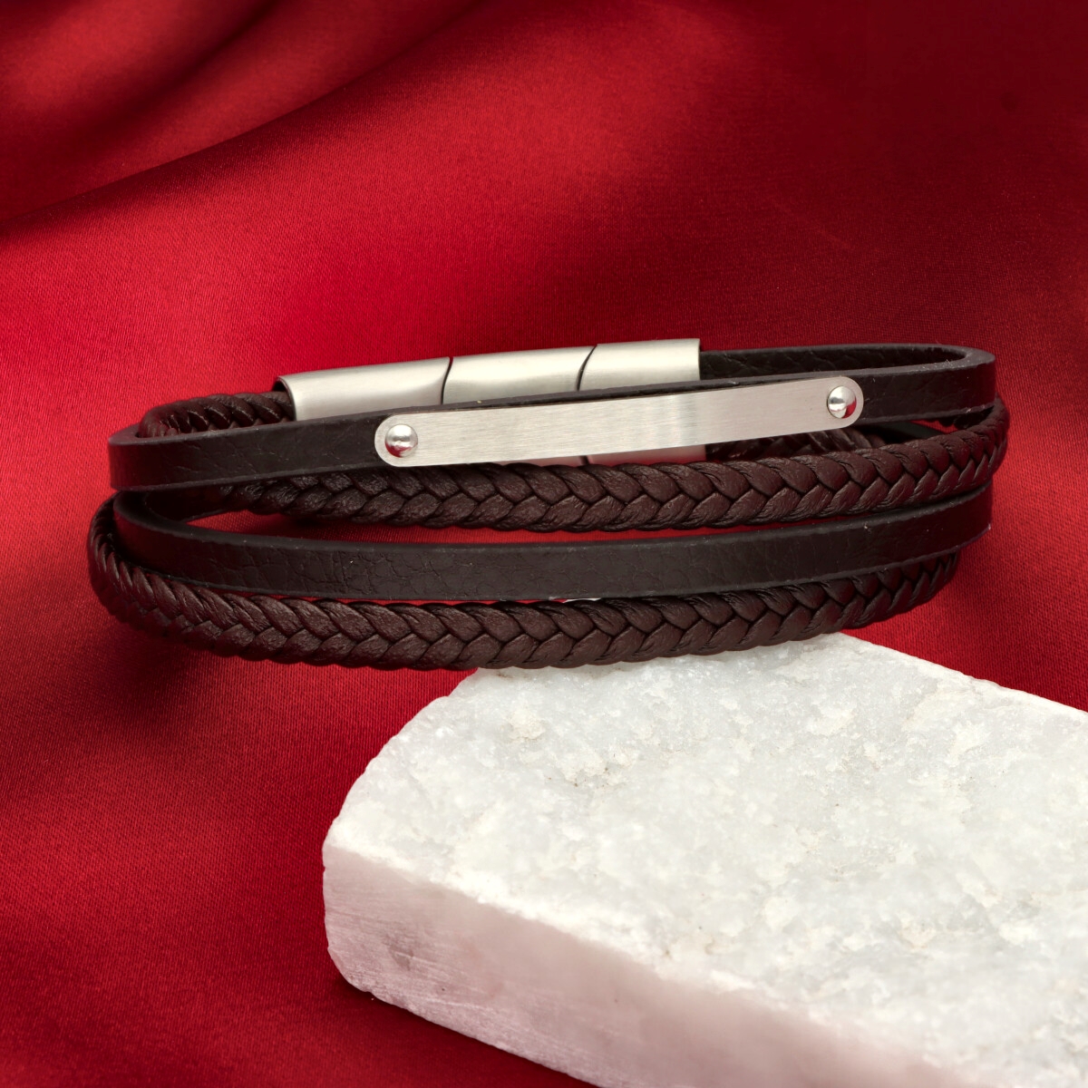 Męska bransoleta wykonana z naturalnej skóry oraz stali szlachetnej 316L, odpornej na uszkodzenia i hipoalergicznej. Prosty, nowoczesny design sprawia, że pasuje zarówno na co dzień, jak i do bardziej eleganckich stylizacji. Model posiada trójdzielny magnes, który ułatwia zakładanie i jednocześnie pozwala regulować długość. Po usunięciu jednego z segmentów można dopasować bransoletę do indywidualnego obwodu nadgarstka. Maksymalna długość: 23 cm. W eleganckim pudełku GRATIS.