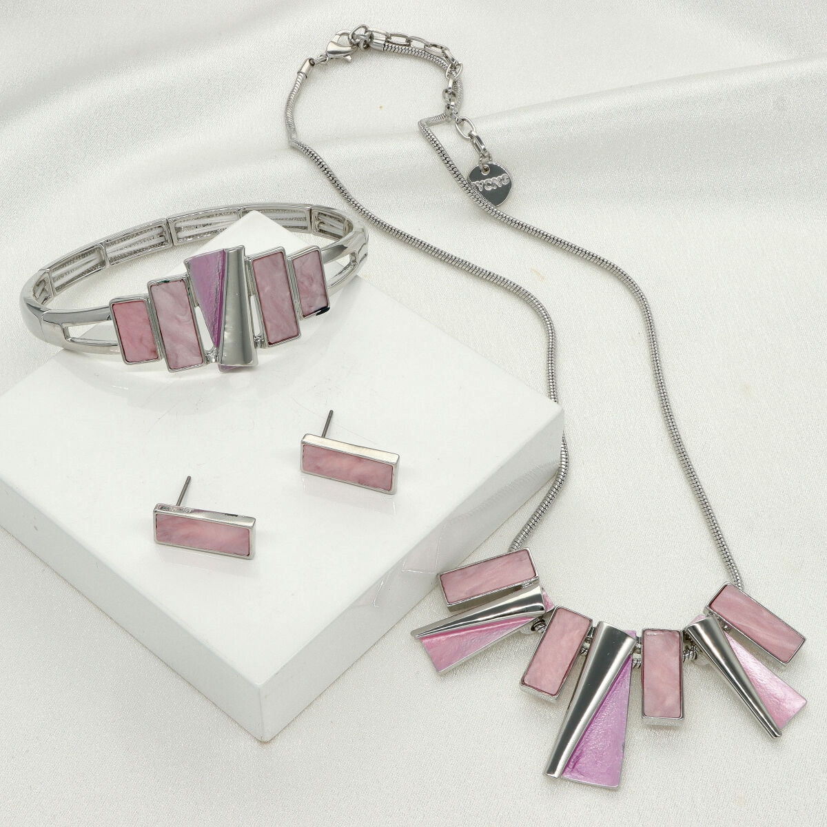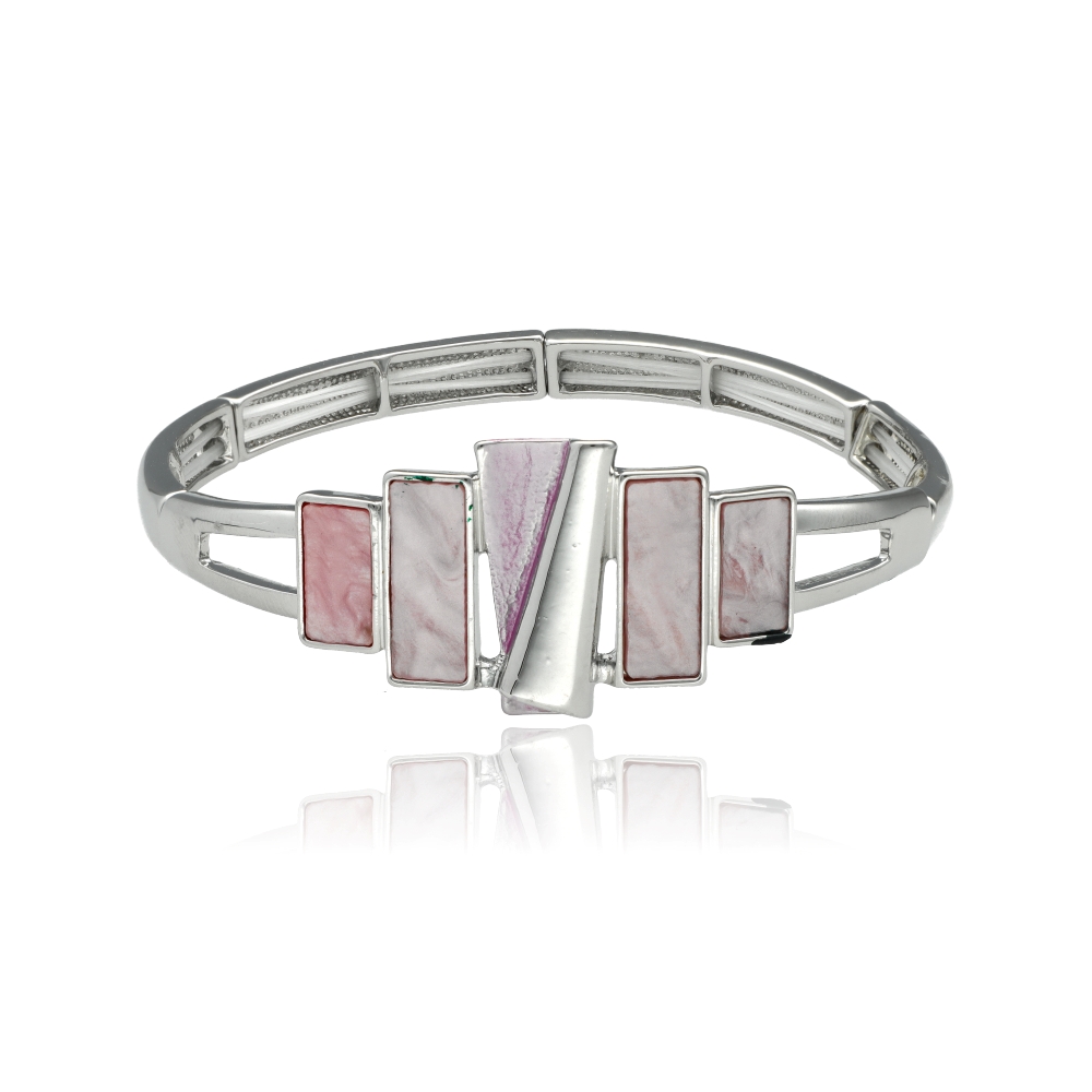 Elegancka bransoletka wykonana z metalu antyalergicznego i kolorowej żywicy. Rozmiar uniwersalny (na rozciągliwych gumkach). Szukaj do kompletu naszyjnika i kolczyków o tym samym indeksie numerycznym. Jewelry made of antiallergic metal and resin.