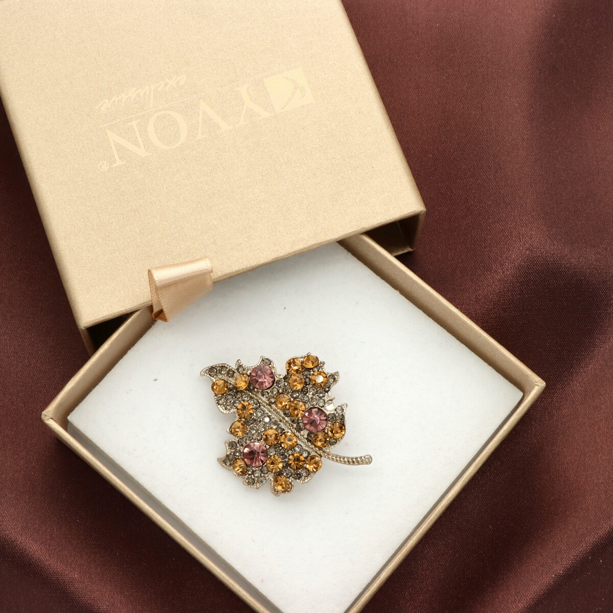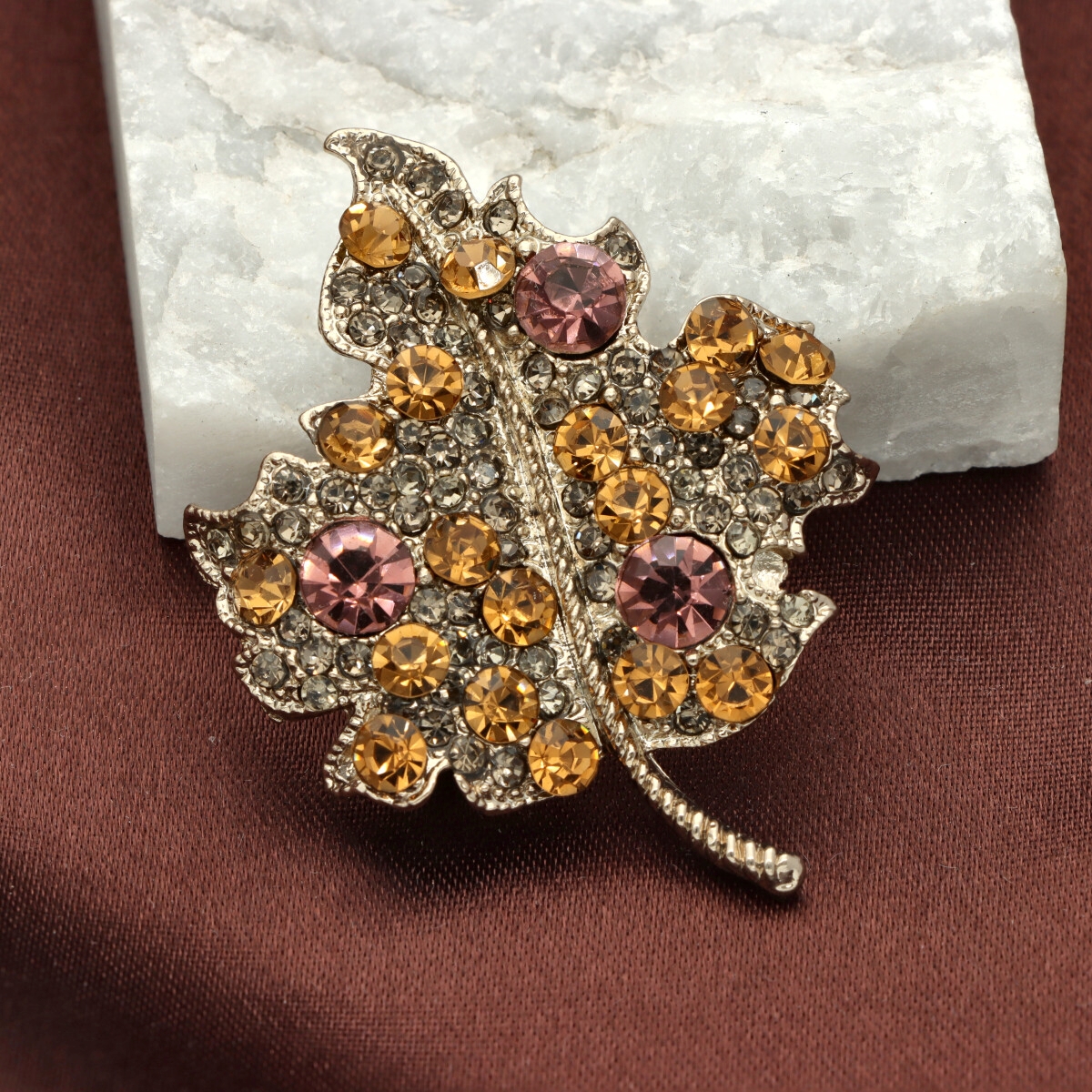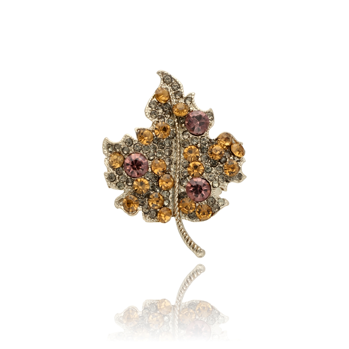 Elegancka broszka wykonana z wysokiej jakości szkła fasetowanego oraz metalu hypoalergicznego. Subtelny dodatek, który idealnie wpisuje się w jesienne stylizacje.
