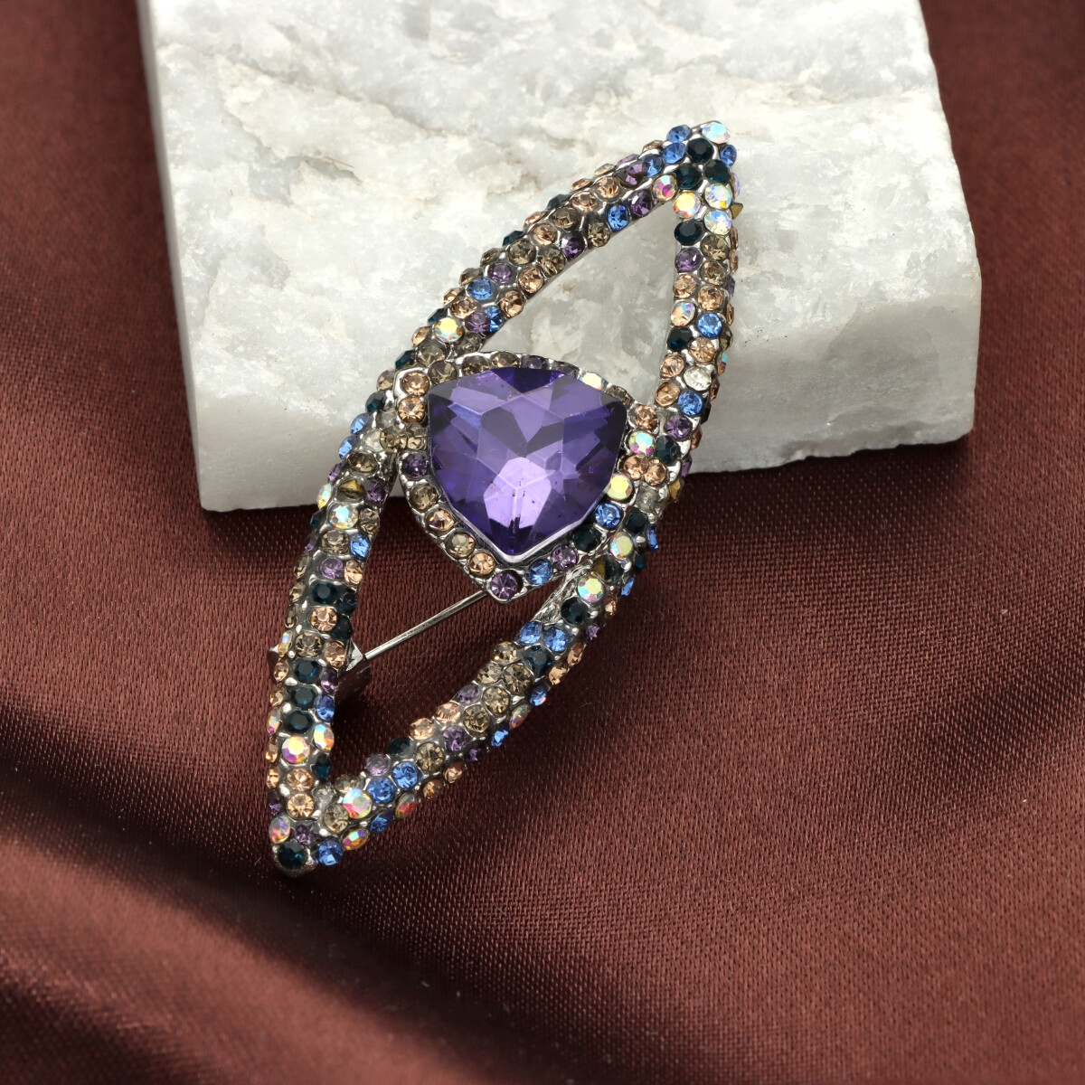 Elegancka broszka wykonana z wysokiej jakości szkła fasetowanego oraz metalu hypoalergicznego. Subtelny dodatek, który idealnie wpisuje się w jesienne stylizacje.