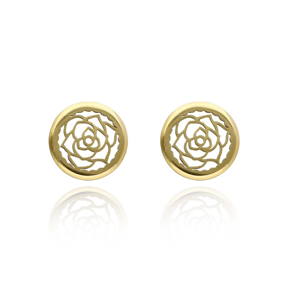 Kolczyki wykonane z hipoalergicznej stali szlachetnej 316L, pozłacanej 16-karatowym złotem. Odznaczają się wyjątkową odpornością na ścieranie i trwałym połyskiem. Średnica ozdobnego elementu 2 cm. Zapięcie na sztyft gwarantuje wygodę użytkowania i stabilność. Każda para kolczyków pakowana jest w eleganckie pudełko YVON. Do kompletu dostępne są pasujący naszyjnik i bransoletka.