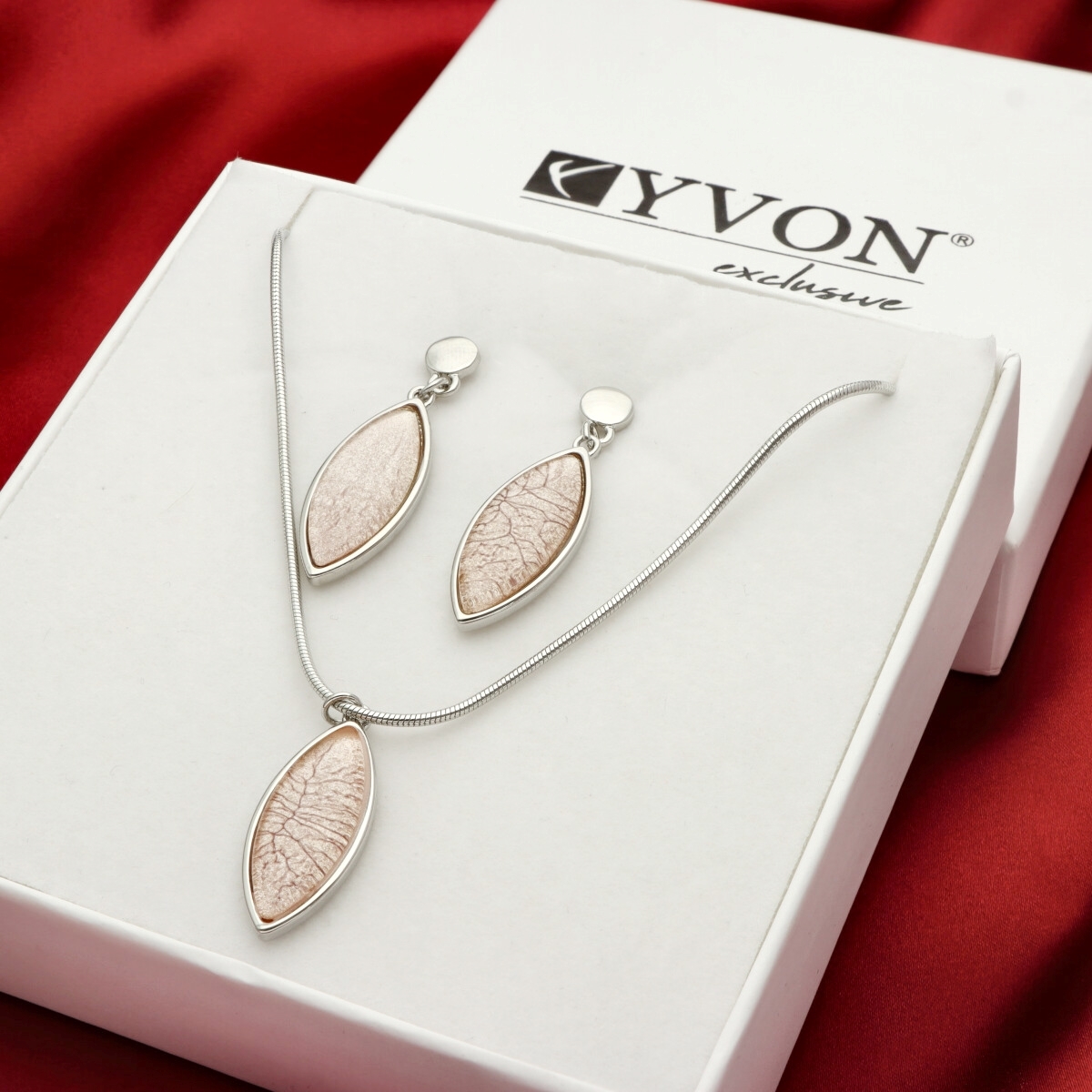 Komplet biżuterii składający się z naszyjnika oraz kolczyków, zapakowany w pudełko prezentowe. Wykonany z hipoalergicznego metalu oraz żywicy jubilerskiej. Lekka forma zapewnia komfort codziennego użytkowania. Długość naszyjnika wynosi 42 cm, dodatkowo 8 cm zawieszki. Długość kolczyków to około 3 cm. Specyfikacja: zestaw: naszyjnik + kolczyki materiał: hipoalergiczny metal, żywica jubilerska długość naszyjnika: 42 cm + 8 cm zawieszka długość kolczyków: ok. 3 cm pudełko prezentowe w zestawie