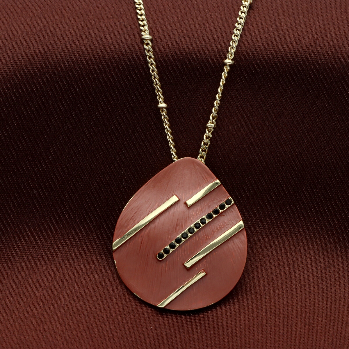 Uroczy, dekoltowy naszyjnik wykonany z antyalergicznego metalu i kolorowej emalii. Długość 45 cm + 8 cm regulacja. Szukaj do kompletu bransoletki i kolczyków o tym samym indeksie numerycznym.