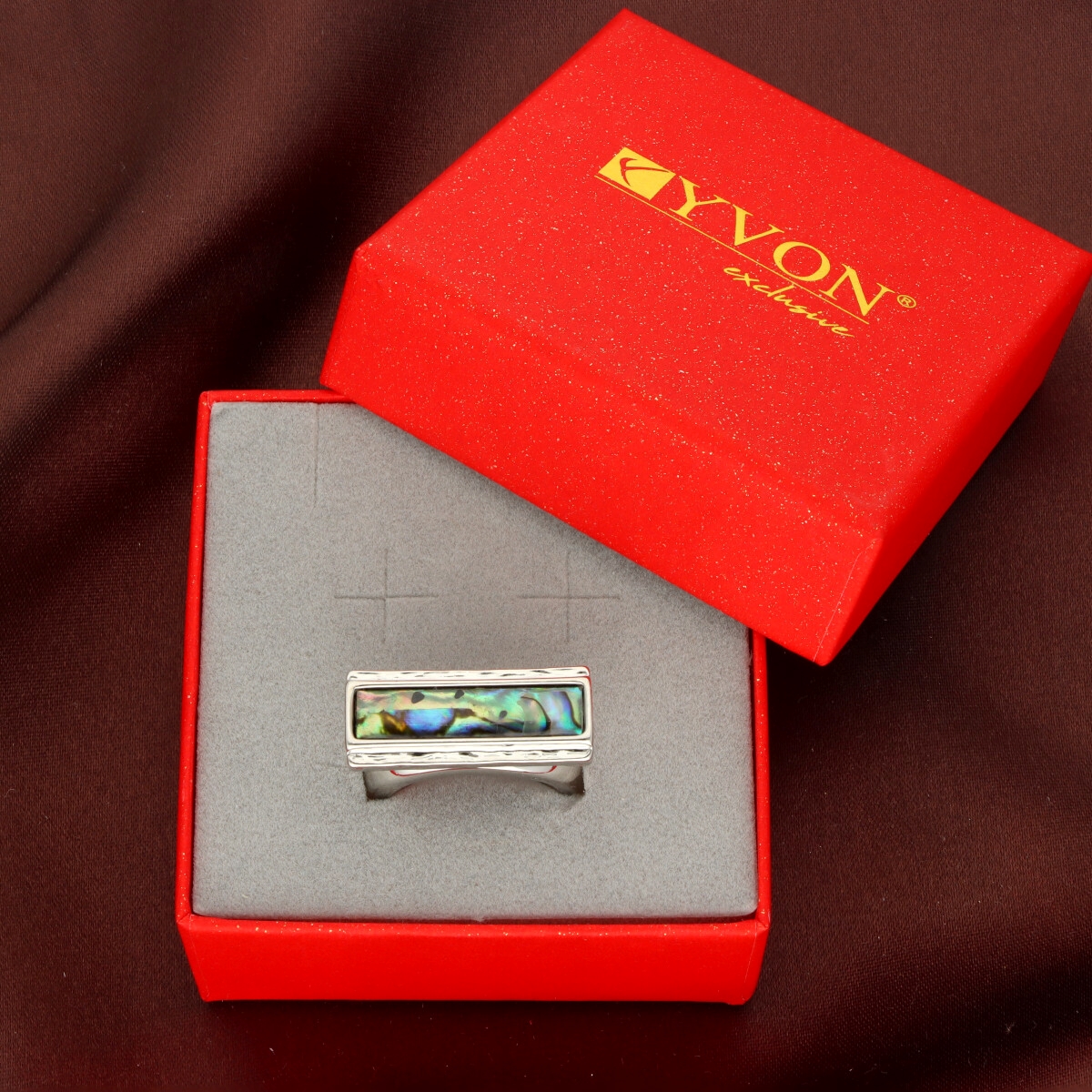 Elegancki pierścionek / damski sygnet wykonany z metalu antyalergicznego – bezpieczny nawet dla wrażliwej skóry, ozdobiony naturalną muszlą Abalone.