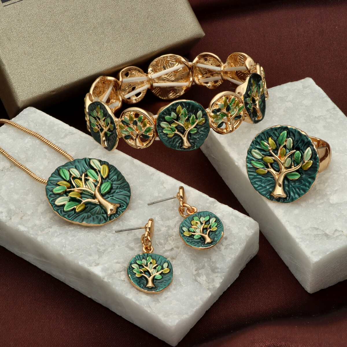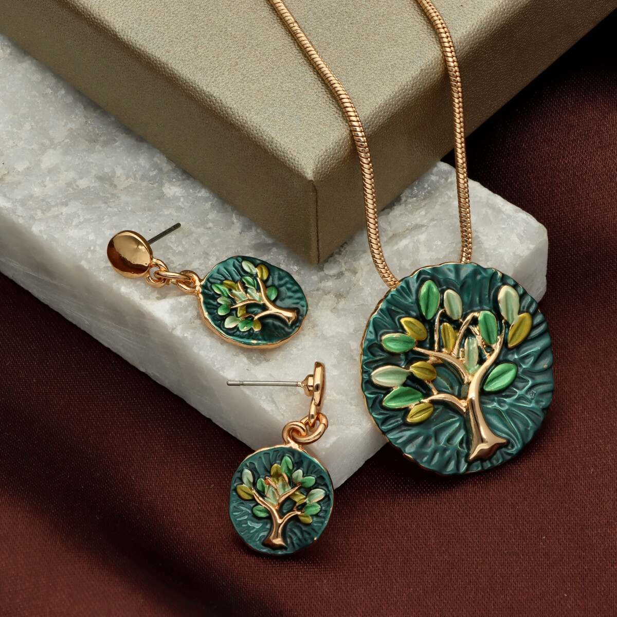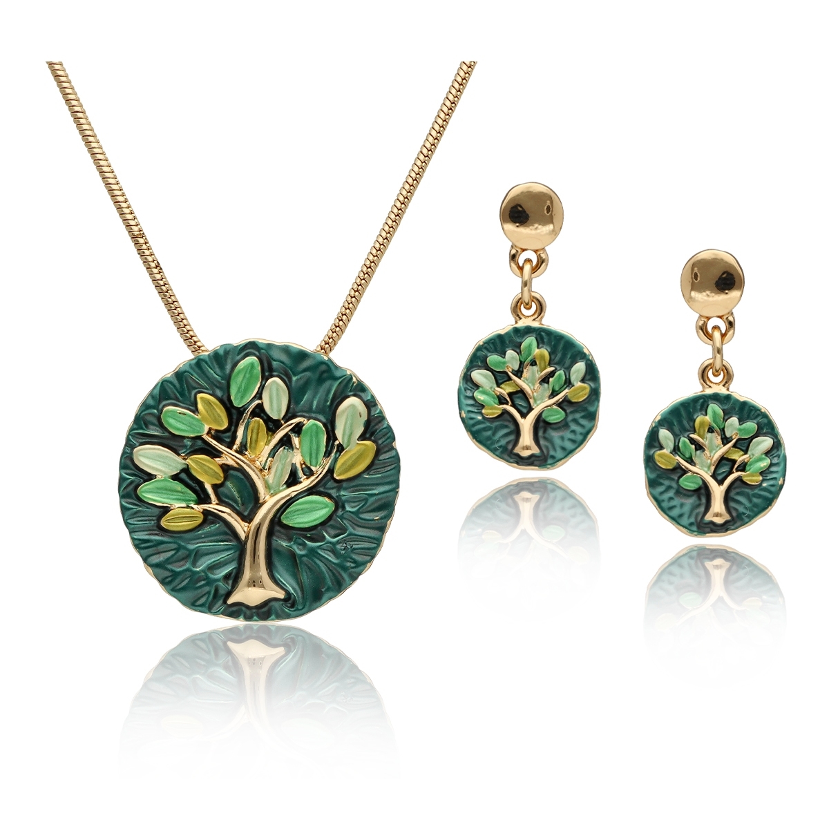 Komplet z kolekcji YVON BIŻUTERIA ARTYSTYCZNA, wykonany z metalu hipoalergicznego. Zdobiony emaliowanymi elementami, które tworzą elegancką, harmonijną kompozycję. Naszyjnik o długości 42 cm z możliwością regulacji o dodatkowe 8 cm, idealnie układa się na dekolcie. Kolczyki na wygodnym zapięciu typu sztyft. Całość zapakowana w eleganckie pudełko prezentowe YVON. To wyjątkowy komplet, który podkreśla kobiecą klasę i artystyczne wyczucie stylu.